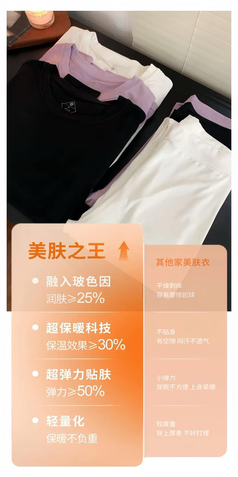 2024河南桑坡lulu保暖内衣套装秋冬新款美肤衣打底衫打底裤保暖裤