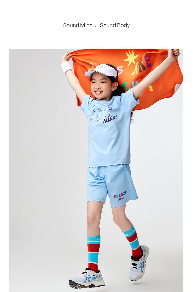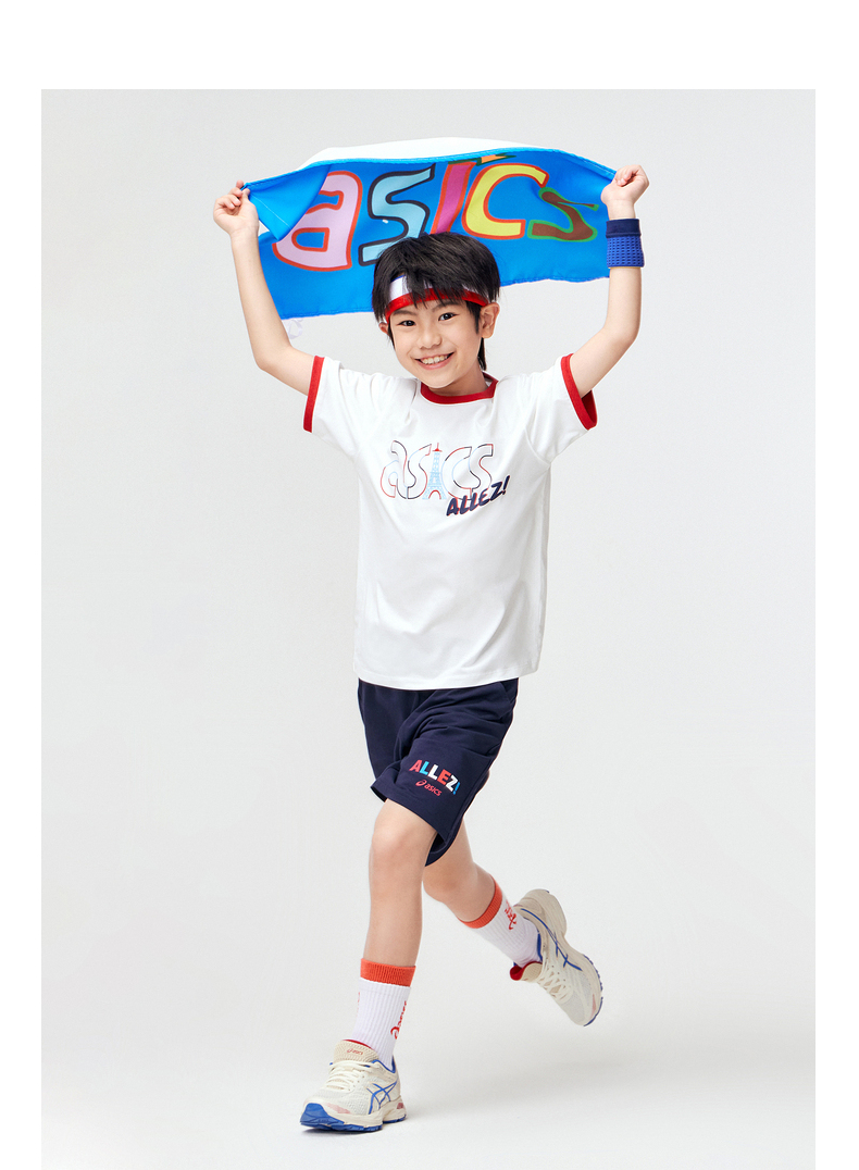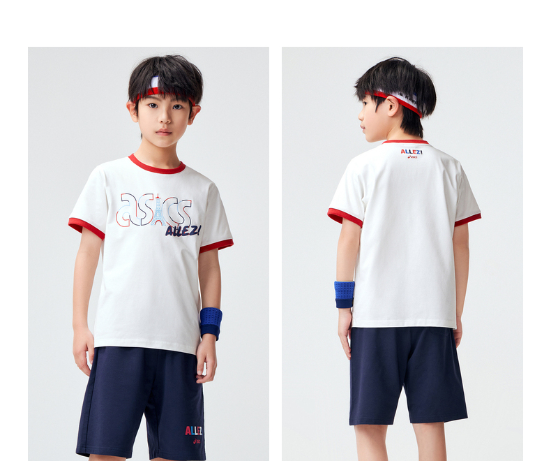 ASICS/亚瑟士童装2024儿童夏季短袖短裤套装宽松休闲吸汗运动套装