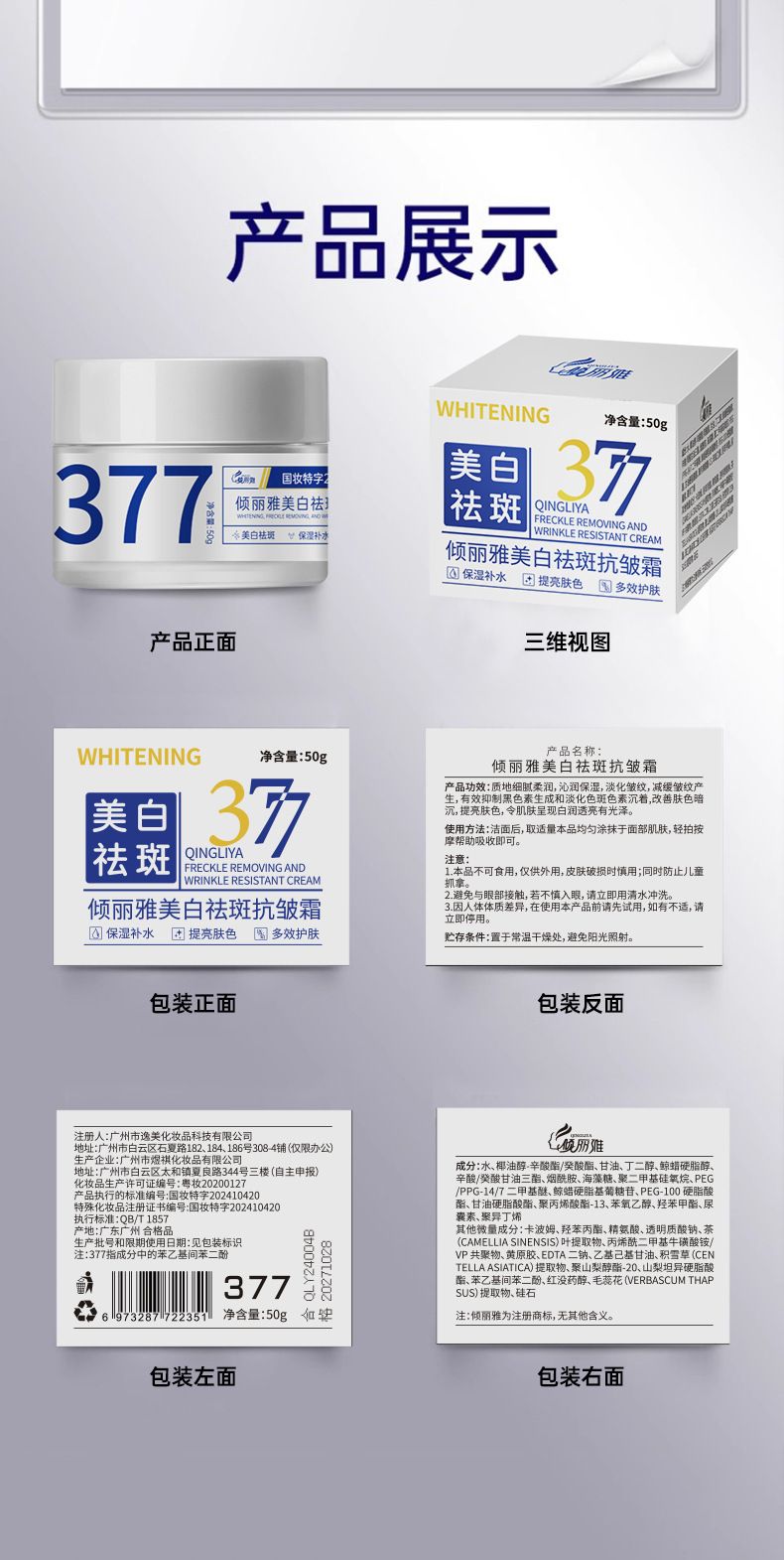【美白提亮!保湿滋润】肌肤越来越白,祛斑霜护肤品377美白祛斑抗皱霜色斑嫩肤保湿补水面霜。rb