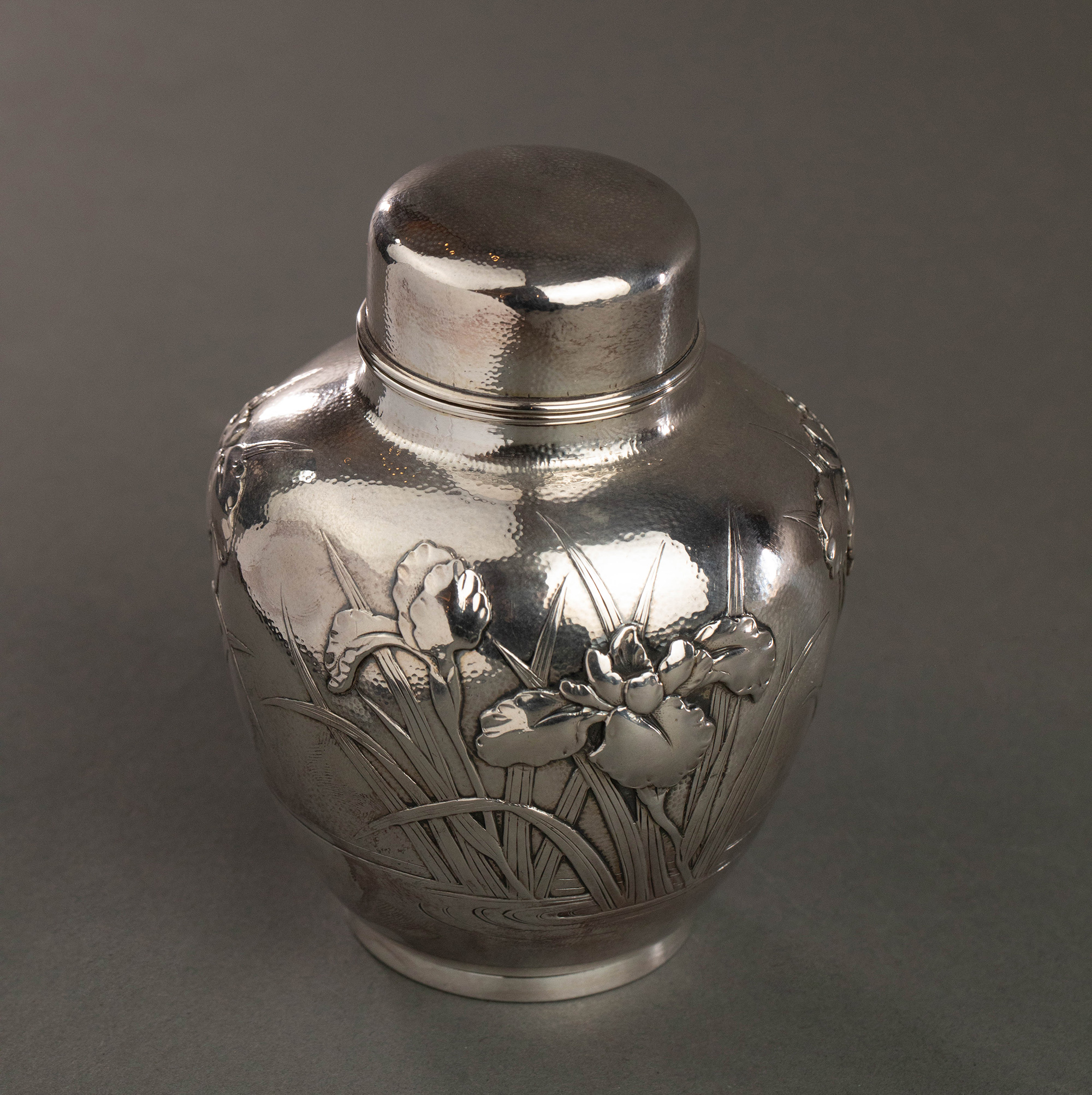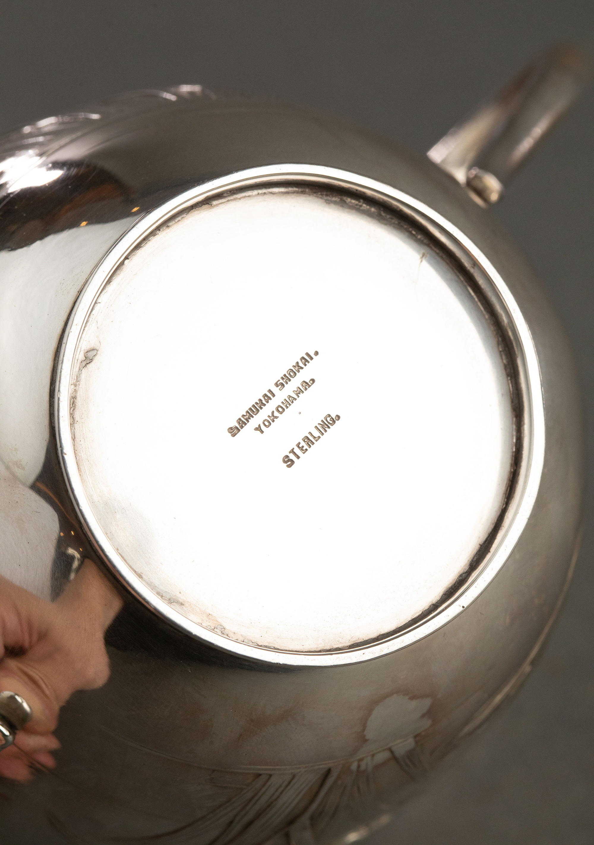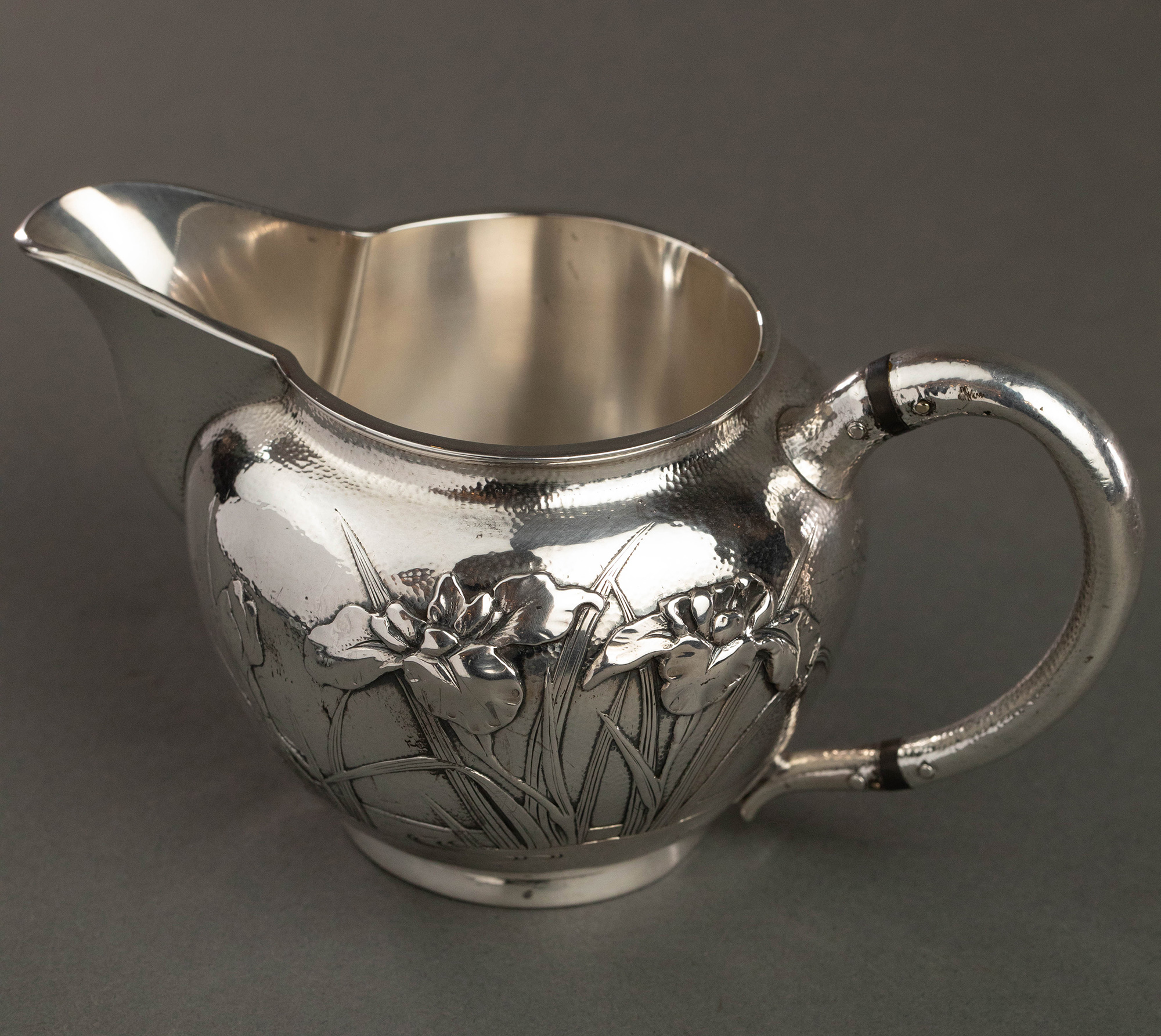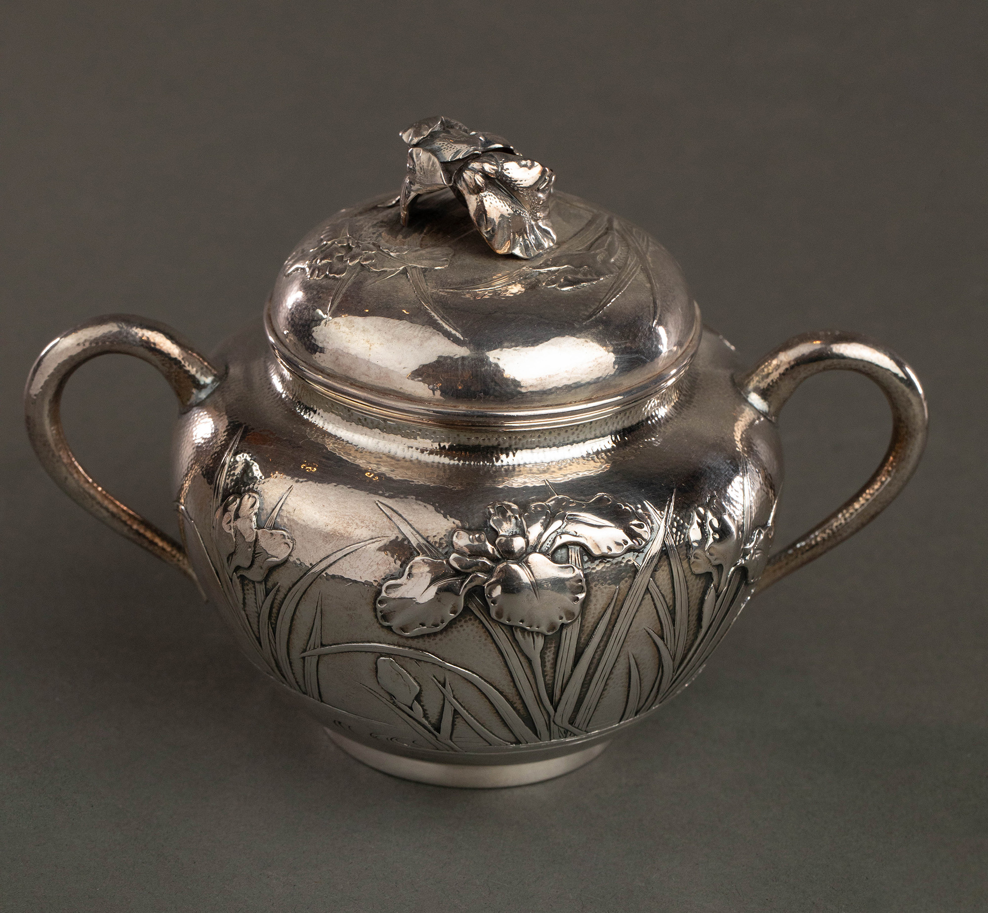 20世纪早期日本横滨武士商会Samurai Shokai签名出品鸢尾花主题纯银精雕咖啡茶具套件