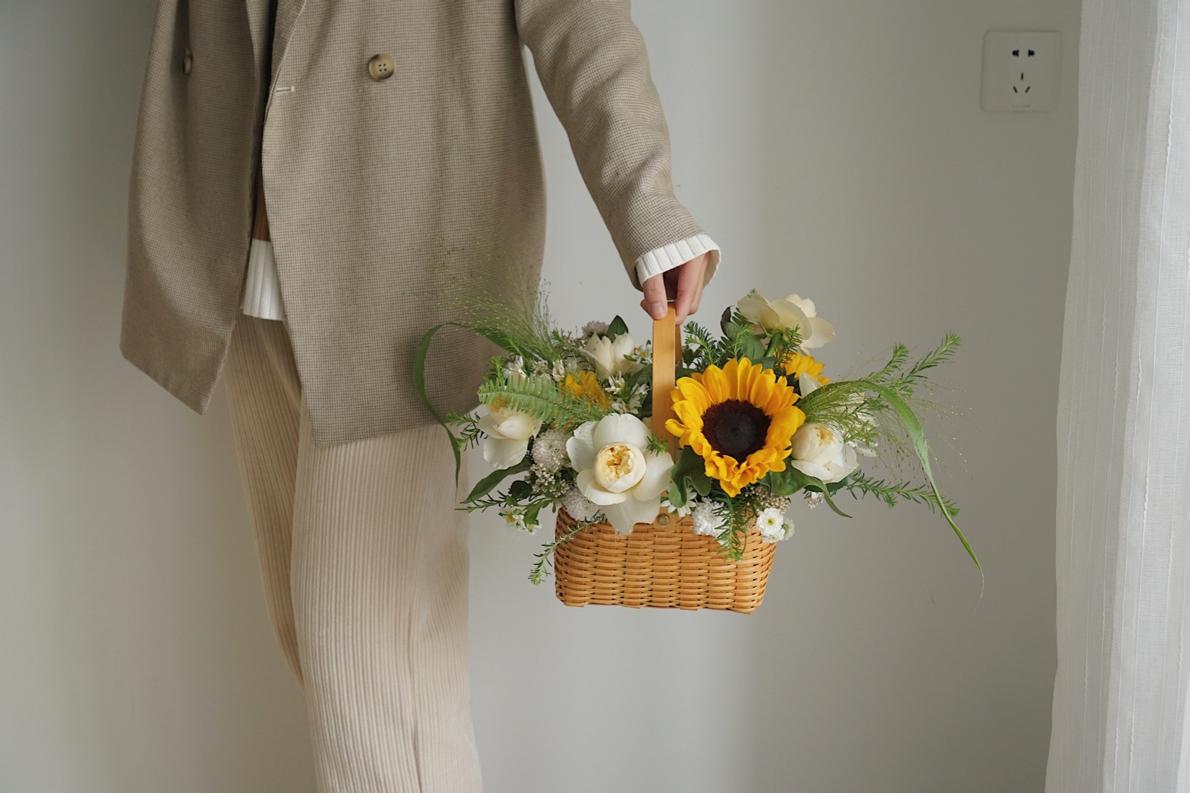《转日莲》手提混搭手提花篮 商品缩略图0 《转日莲》手提混搭手提花篮 商品缩略图1