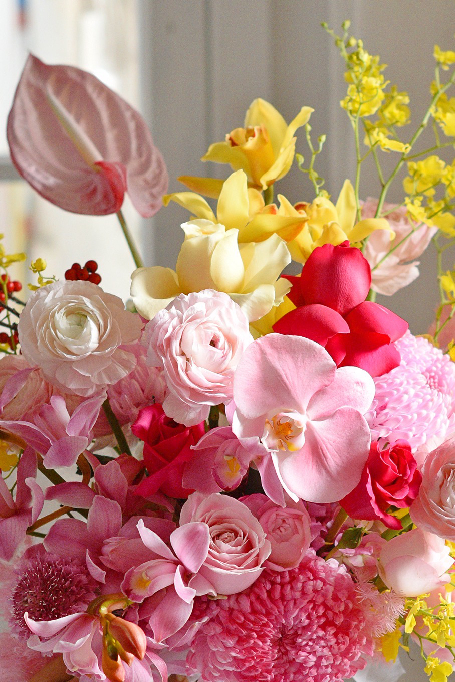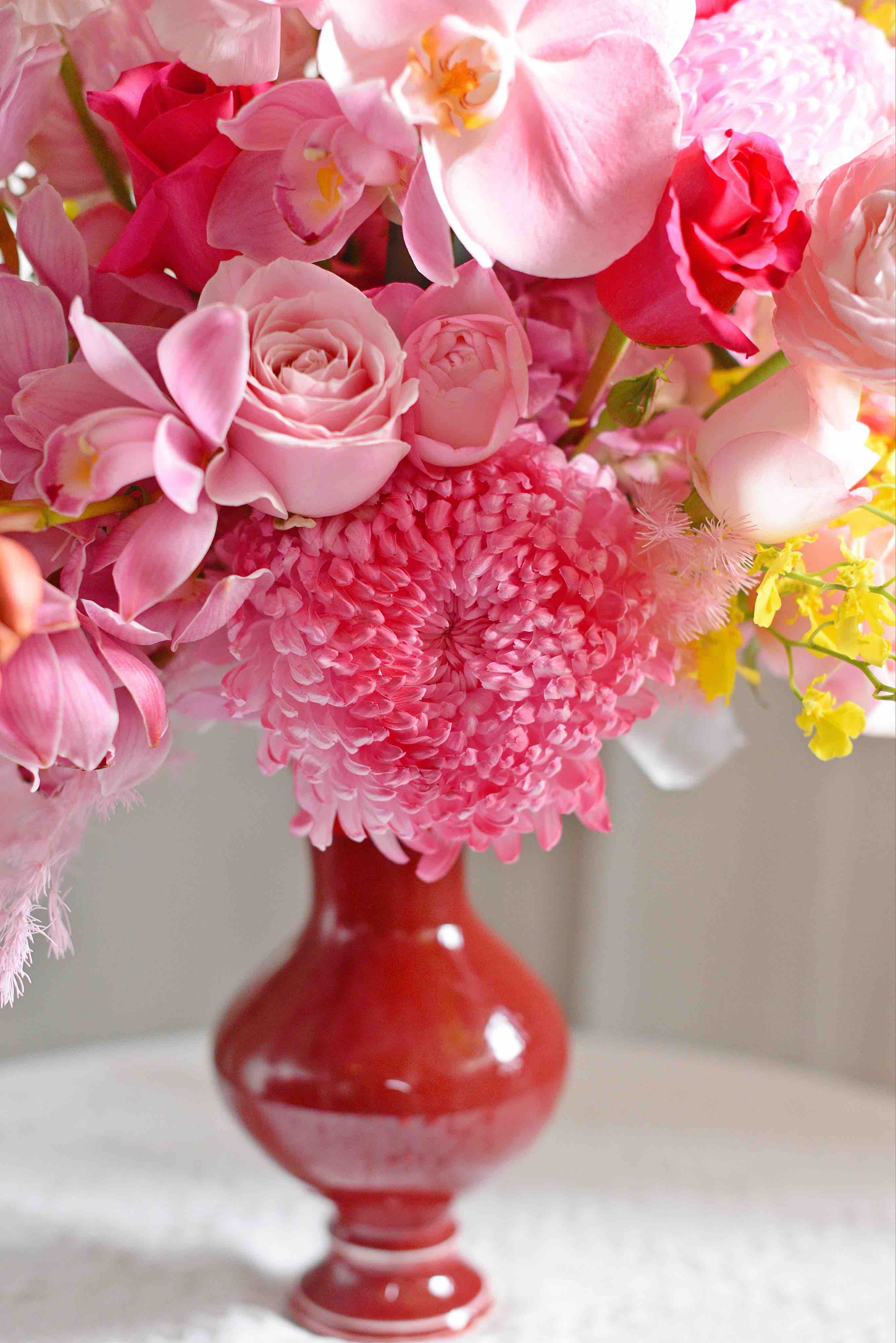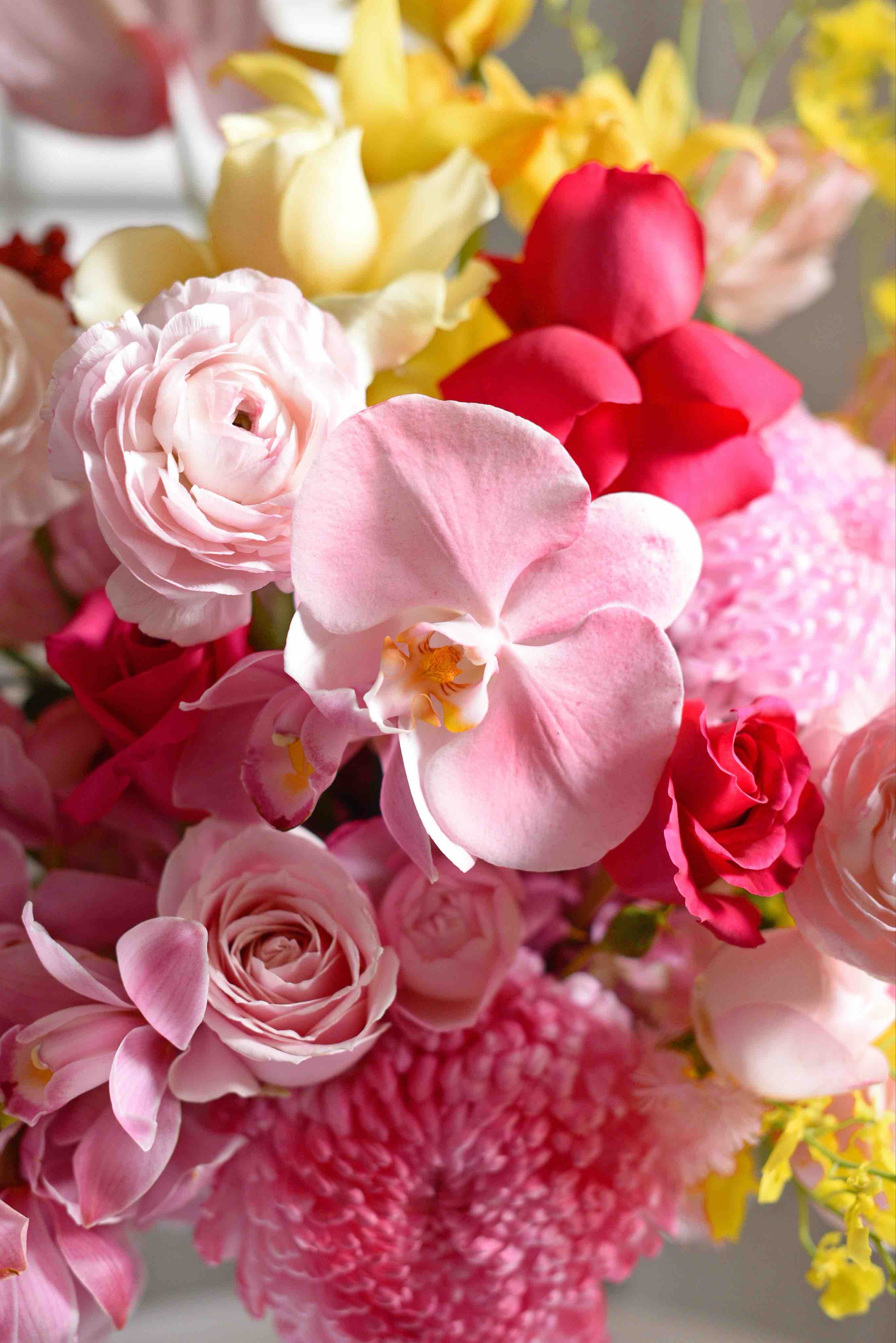 《春和景明》大花蕙兰蝴蝶兰河内洋牡丹瓶插花
