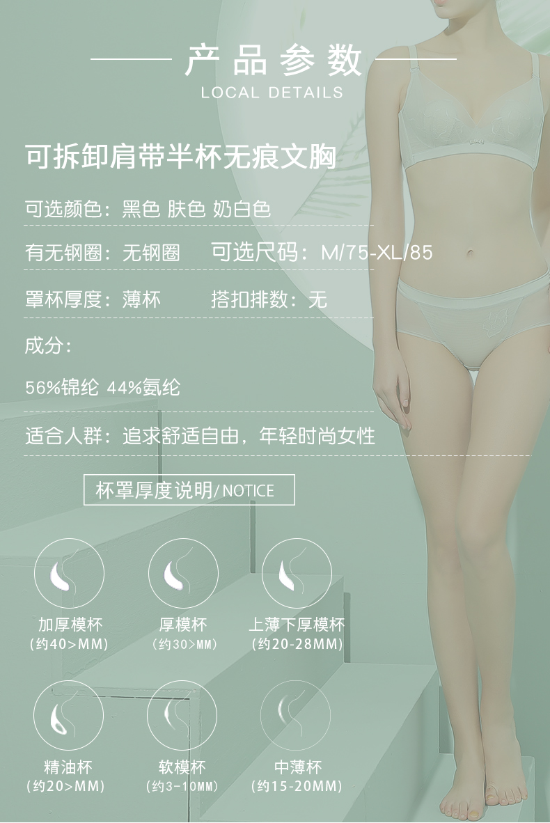 美季美优可拆卸肩带半杯无痕文胸W350306