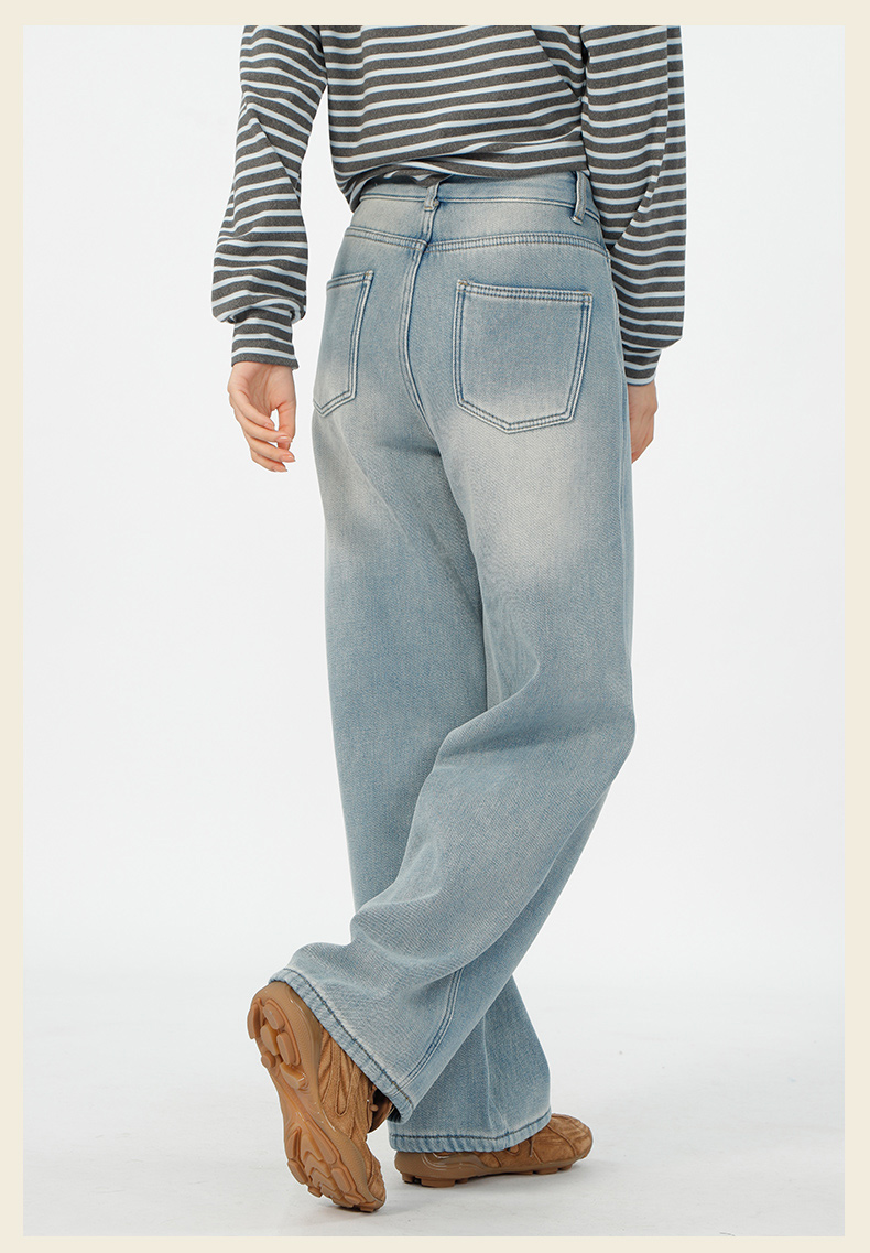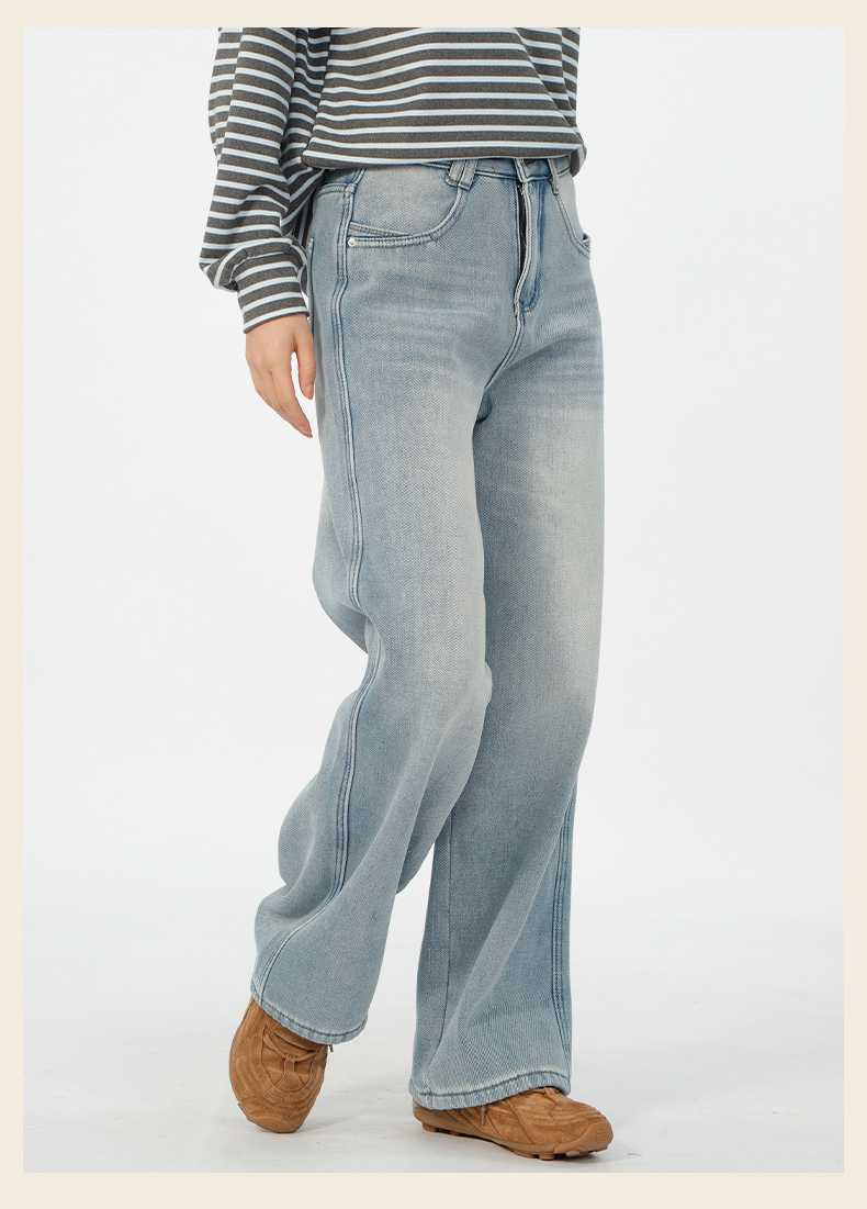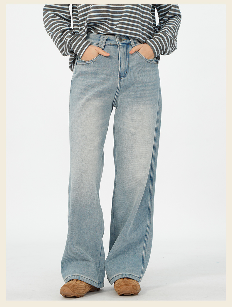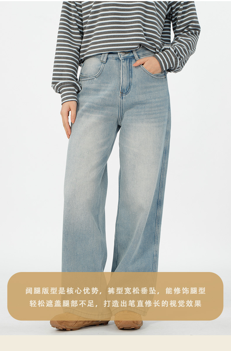 基本款复合绒阔腿牛仔裤-纪念日百货门店同款167546566