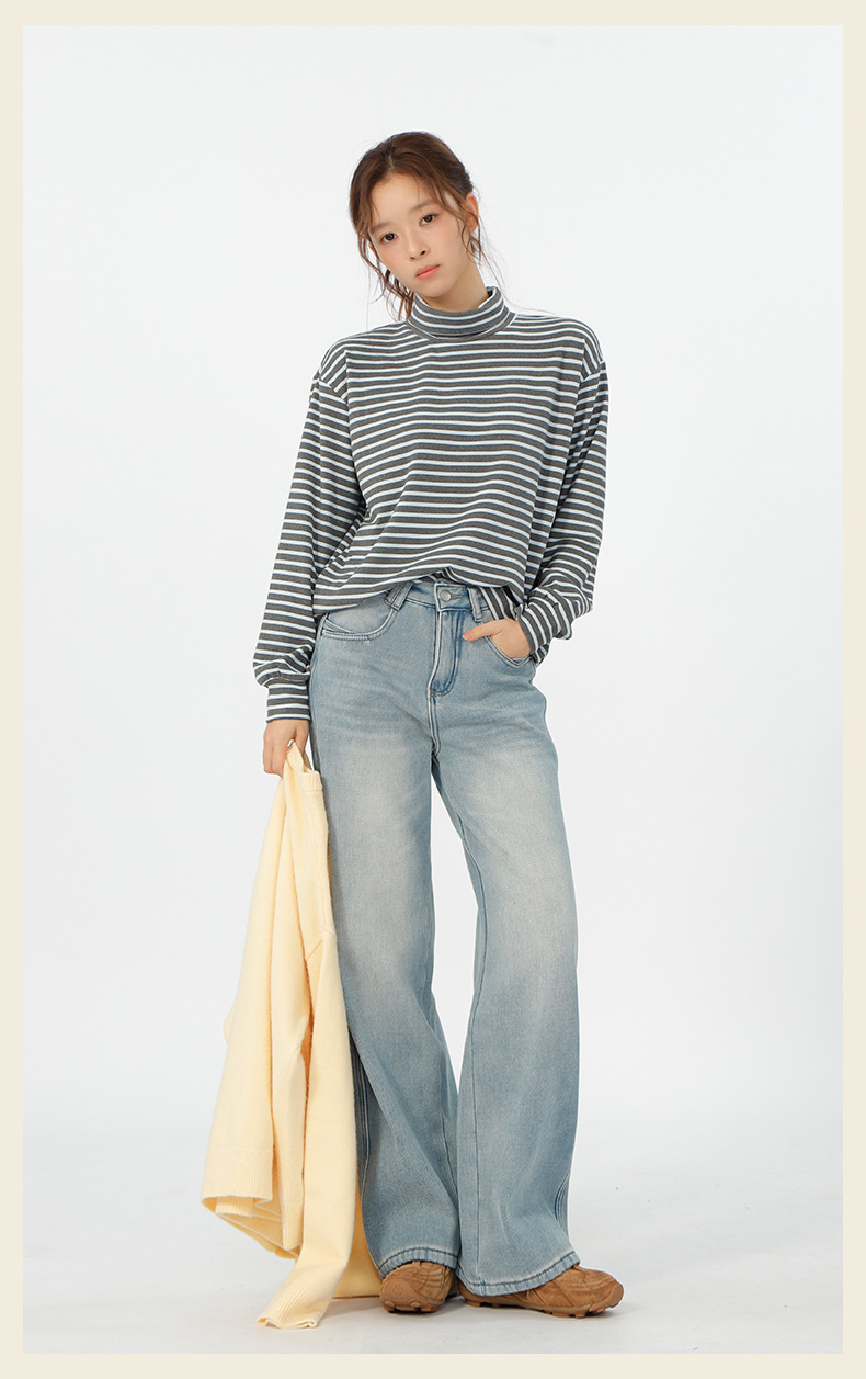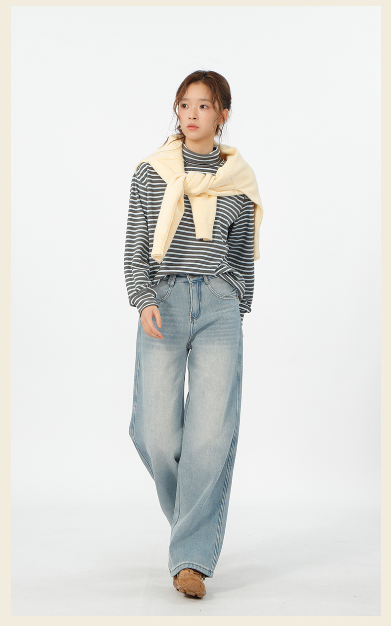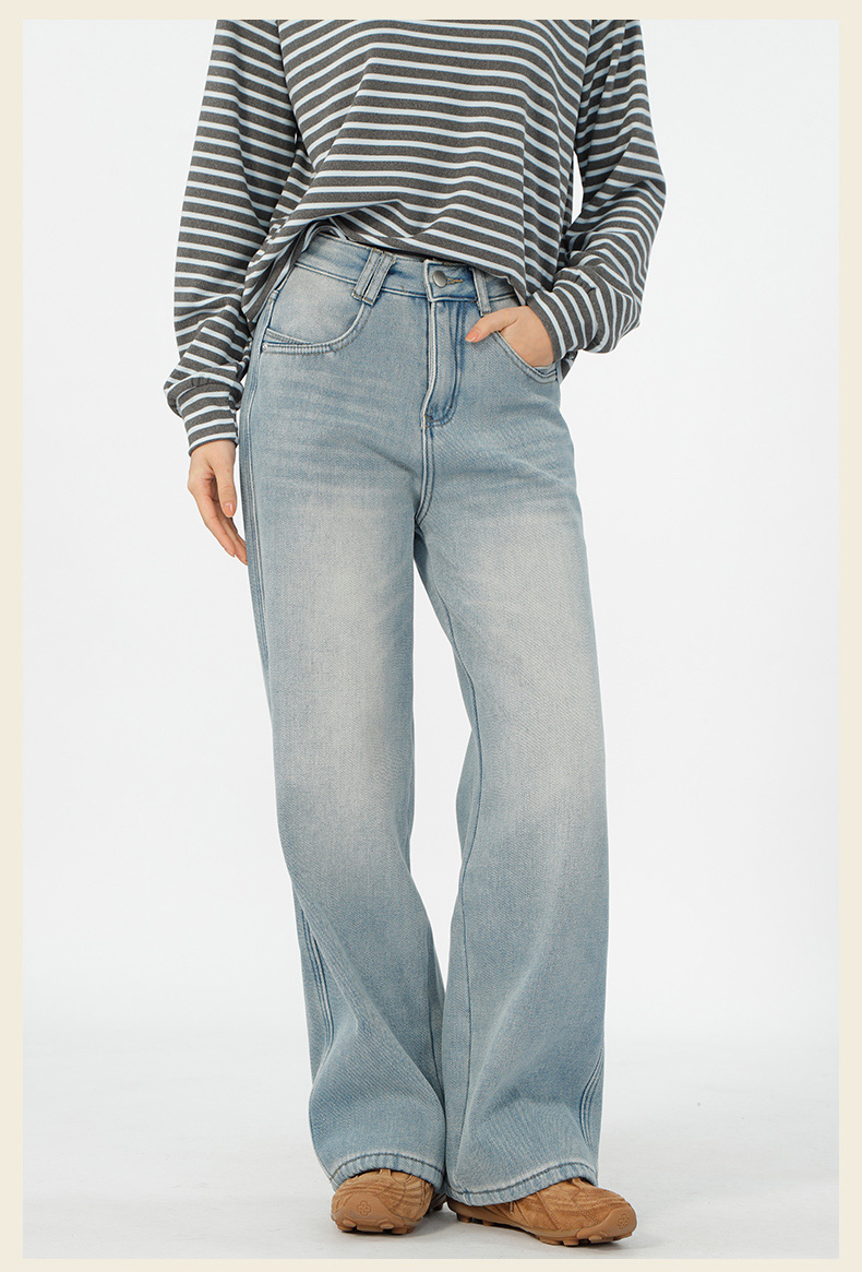 基本款复合绒阔腿牛仔裤-纪念日百货门店同款167546566