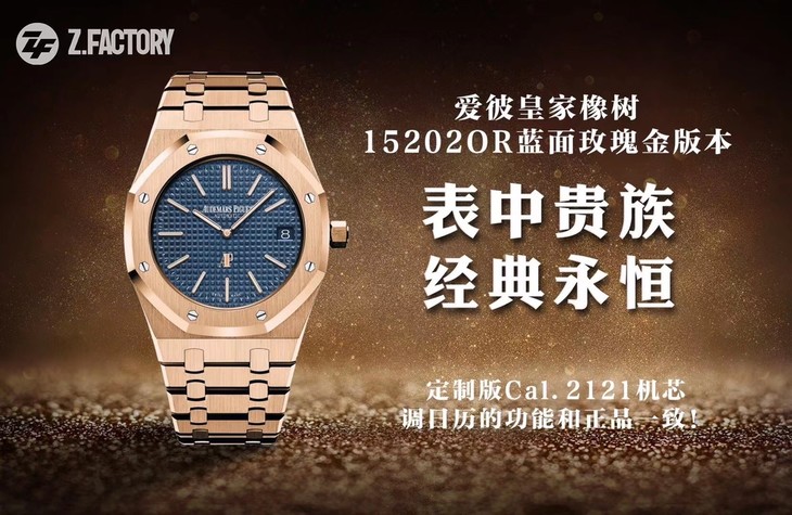 【ZF Factory2021墙裂推荐 表中贵族】爱.彼A.P皇家橡树 15202OR蓝面玫瑰金版本蓝金的贵族配色上线,补足了ZF复刻皇橡15202钢王系列产品线。