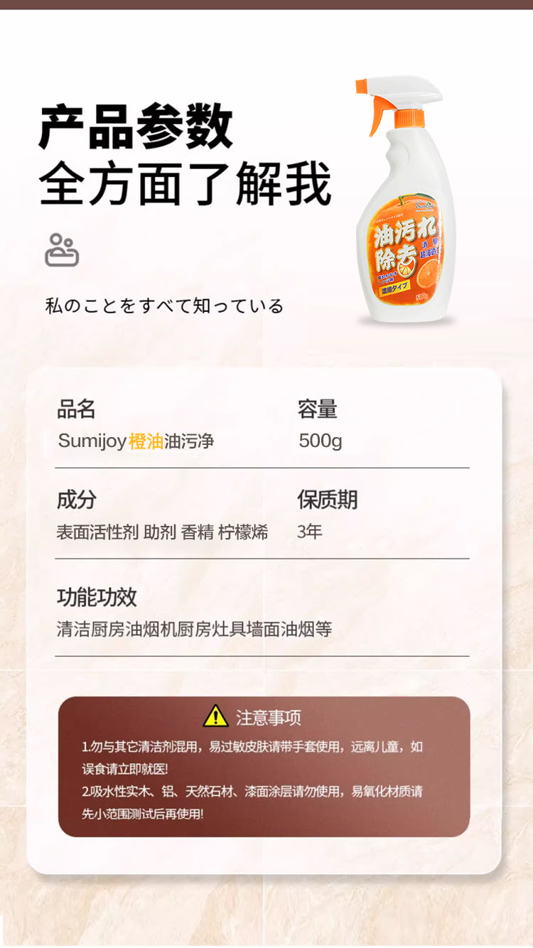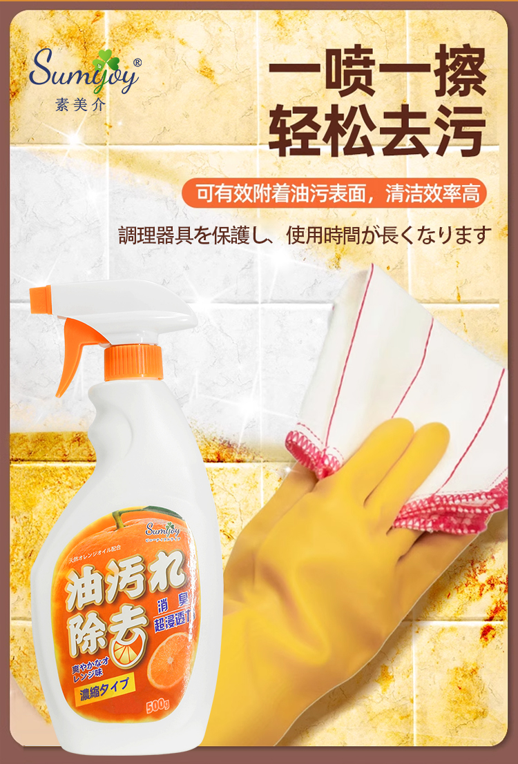 Sumijoy素美介厨房抽油烟机橙油清洗剂强力去油污净除油垢去油 500g/瓶