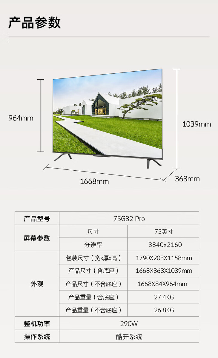 创维(912463)75G32 PRO 画质旗舰 全时语音 防蓝光护眼 4K超高清 画质防抖 75英寸 75G32 PRO 75英寸