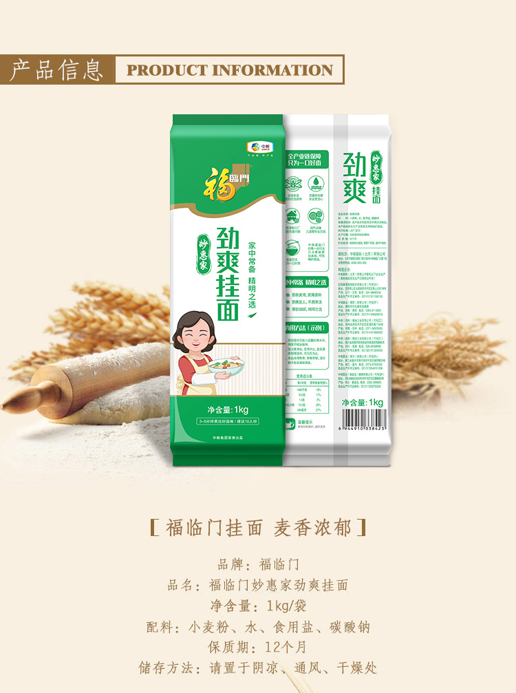 福临门妙惠家劲爽挂面塑包(方2.0)1kg