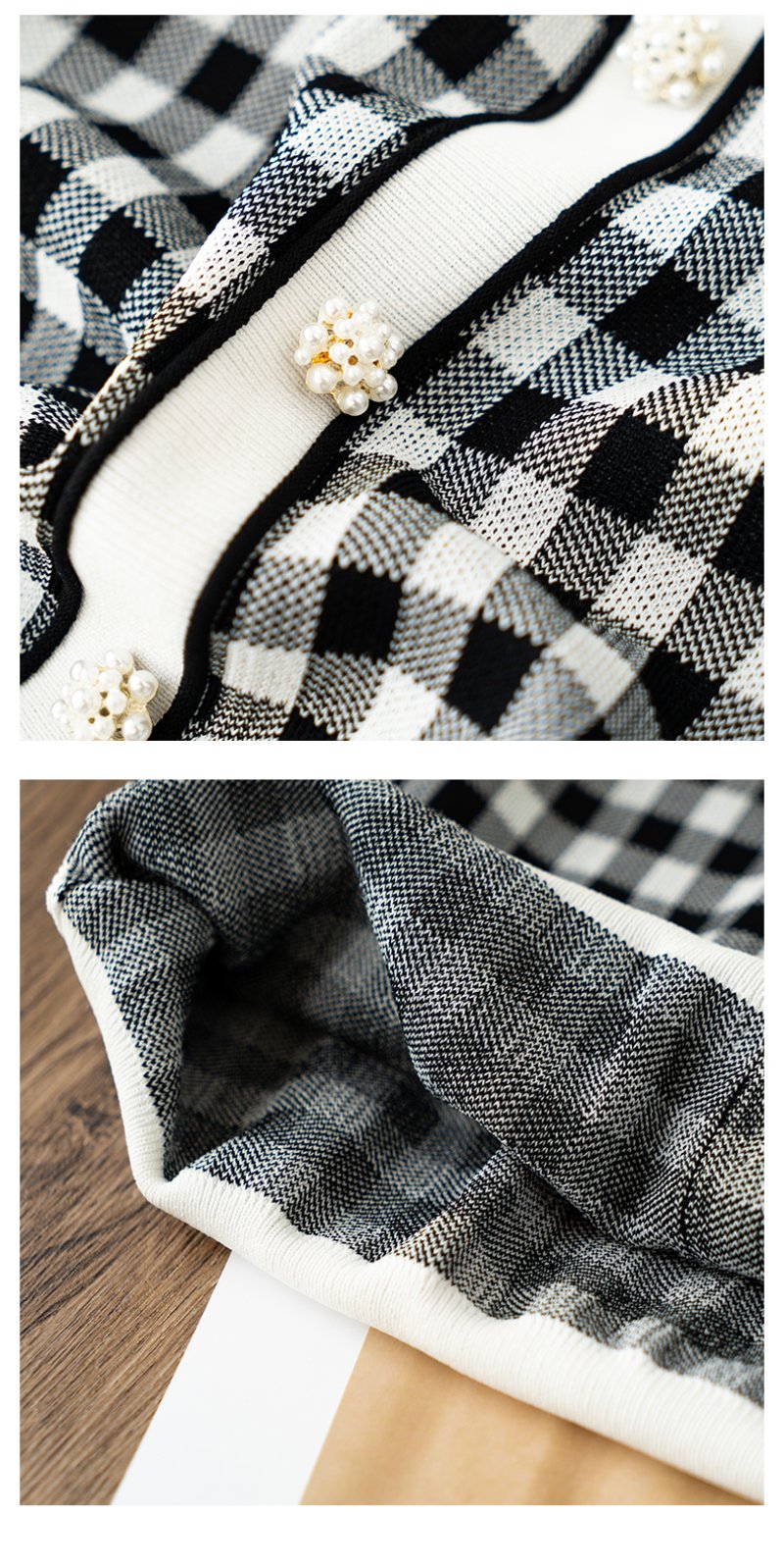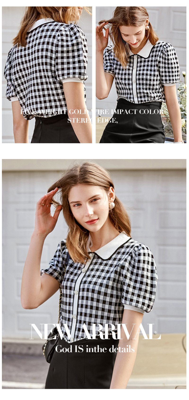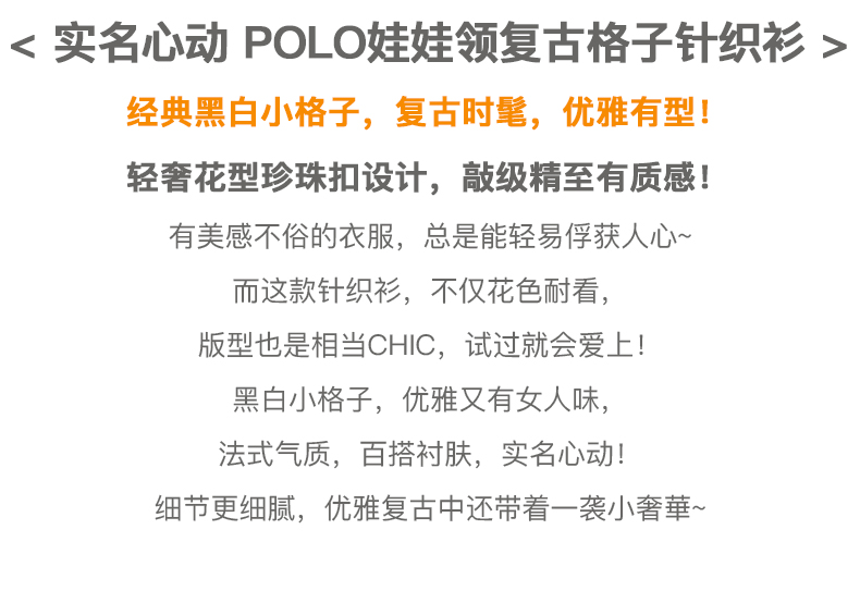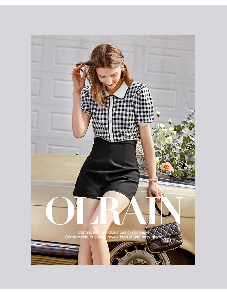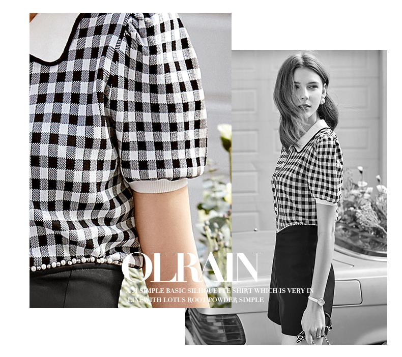 欧芮儿娃娃领针织衫女2021春夏新款复古格子洋气泡泡袖短袖上衣