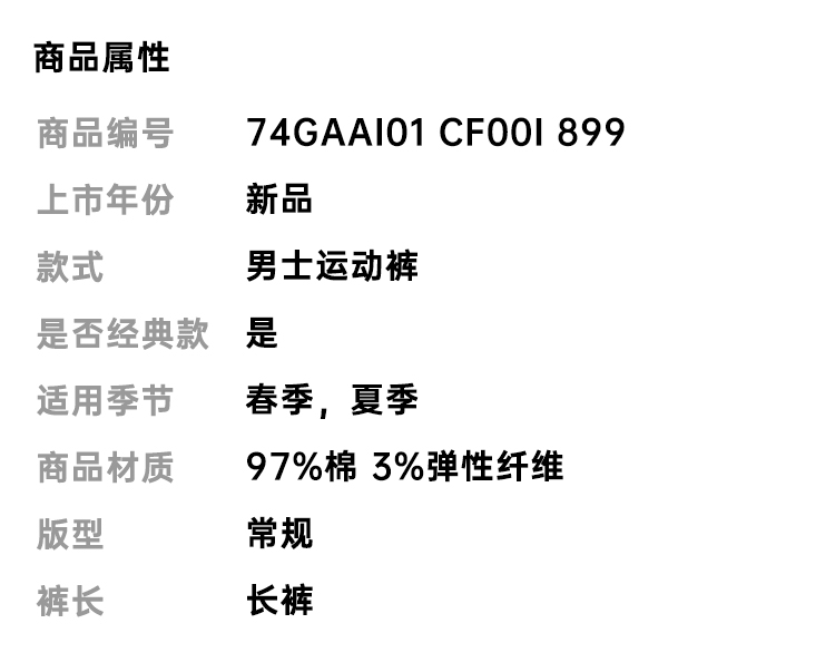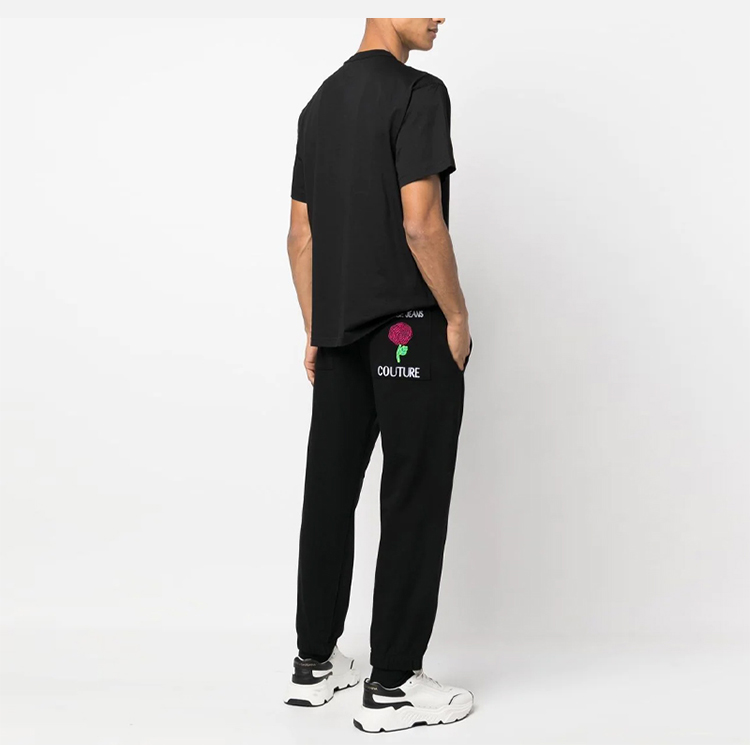 VERSACE JEANS COUTURE 范思哲 男士棉质刺绣徽标休闲运动裤 黑色 74GAAI01 CF00I 899