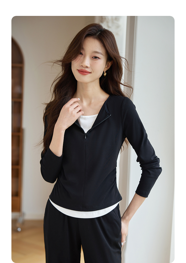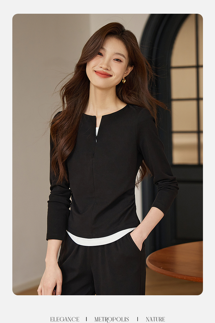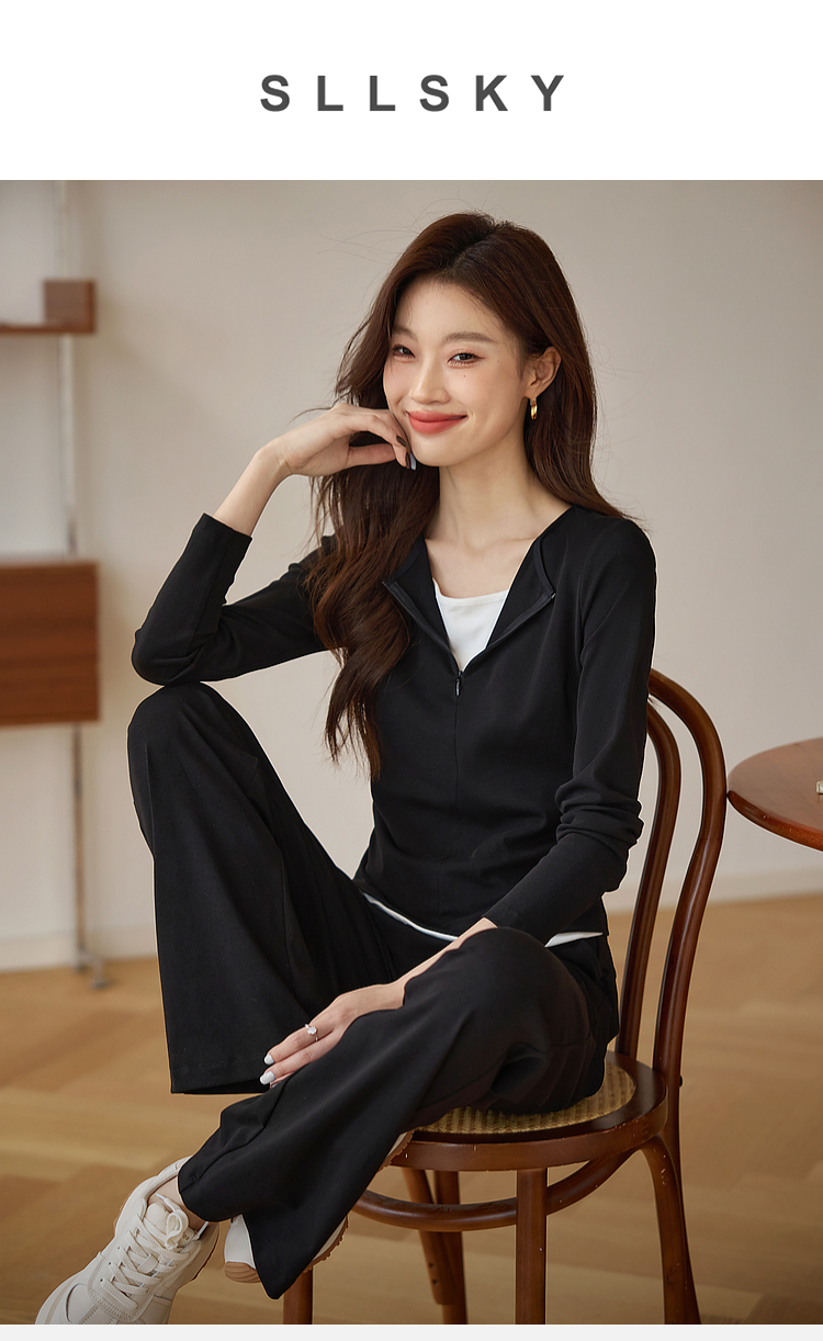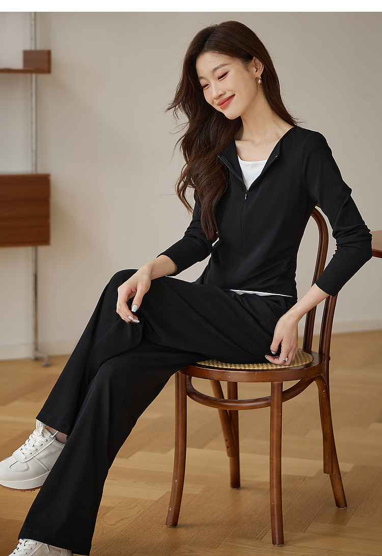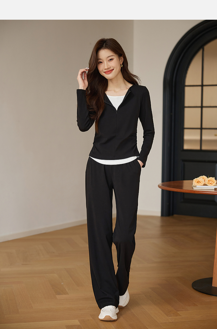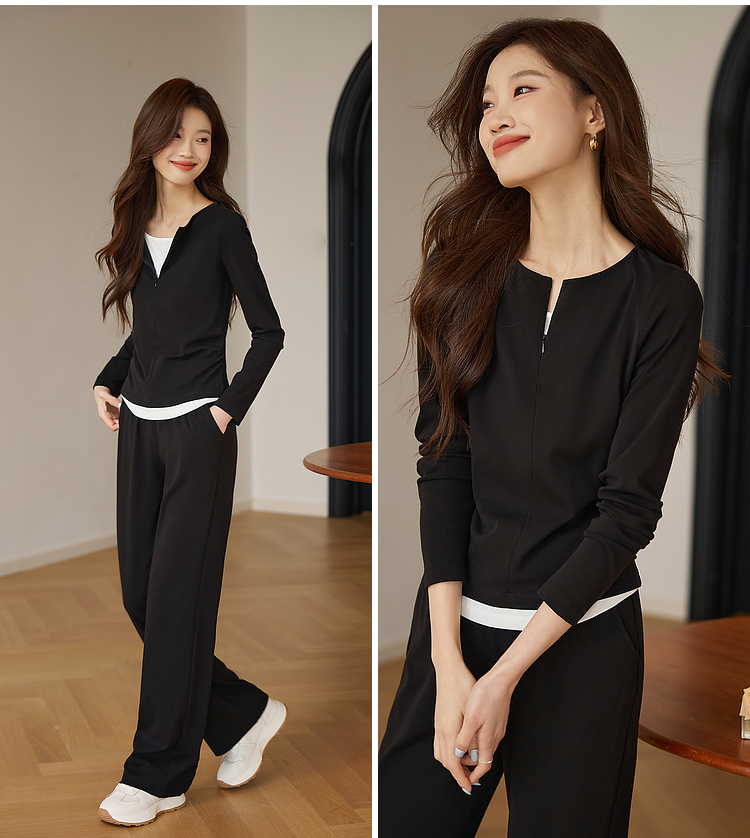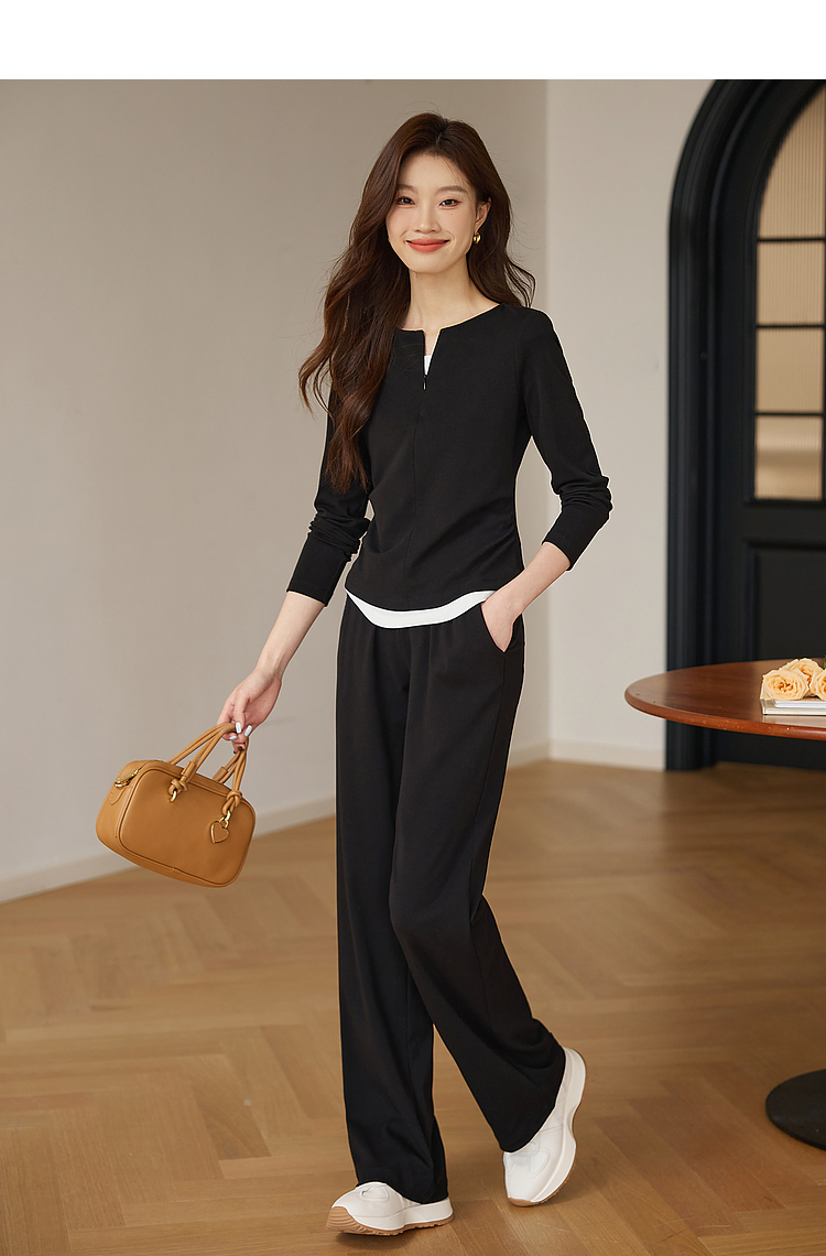 【专属特价】熙世界黑色假两件上衣休闲阔腿裤子两件套装2025秋装搭配一整套