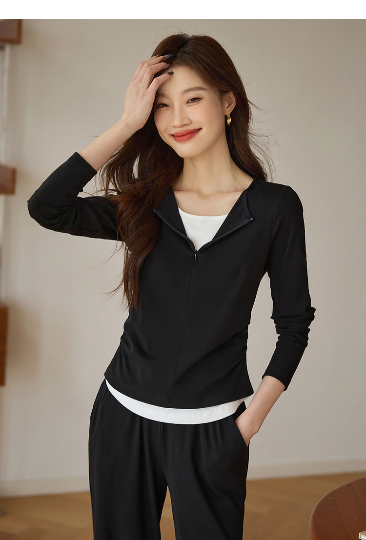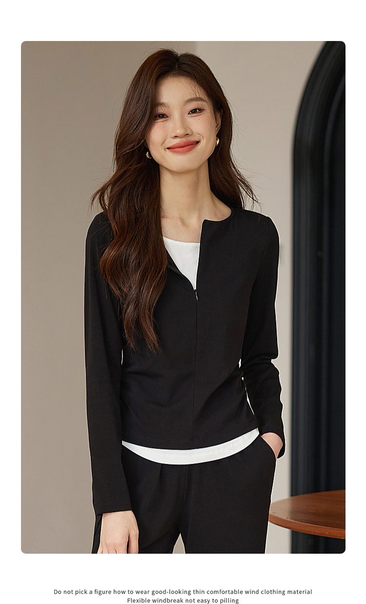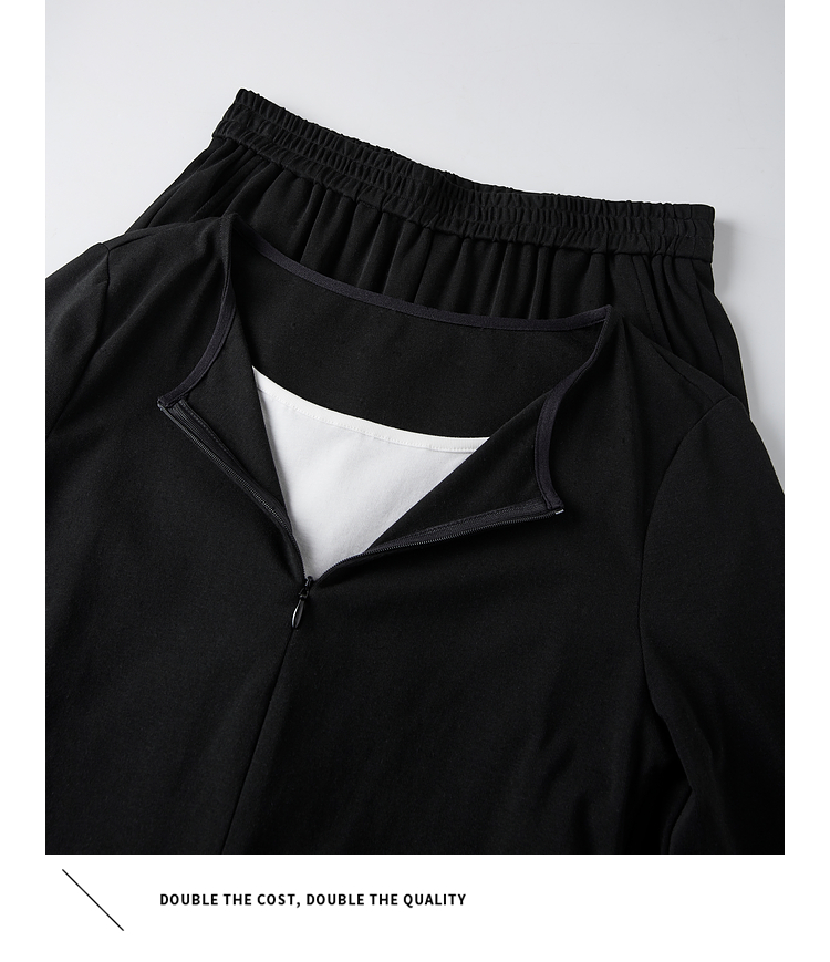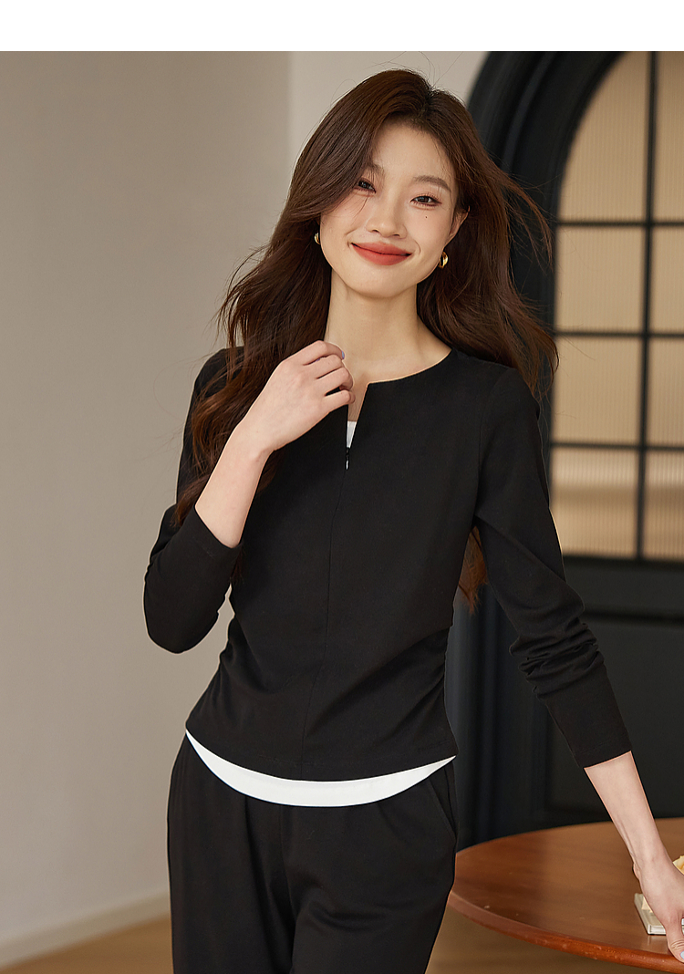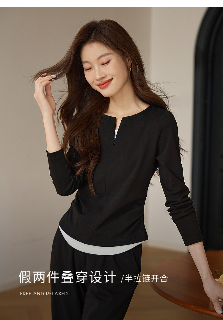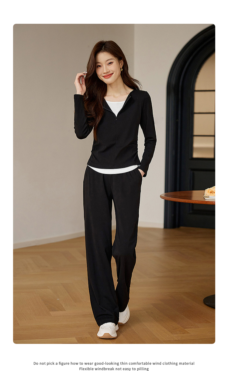 【专属特价】熙世界黑色假两件上衣休闲阔腿裤子两件套装2025秋装搭配一整套