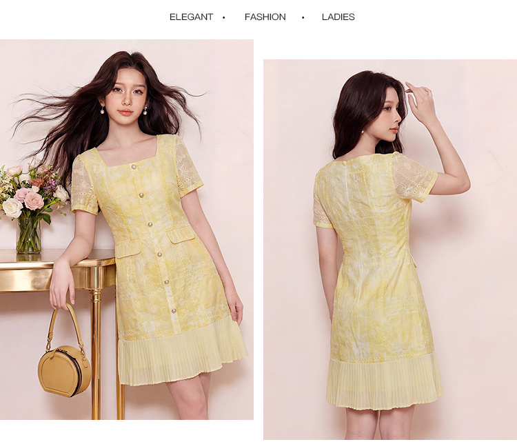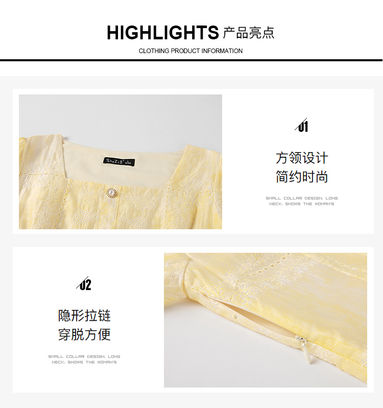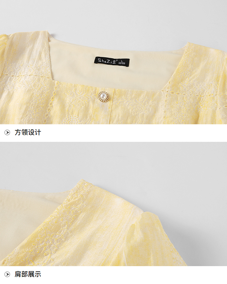 奢姿大码女装2026夏季方领珍珠扣减龄连衣裙胖妹妹刺绣时尚裙子9962872036