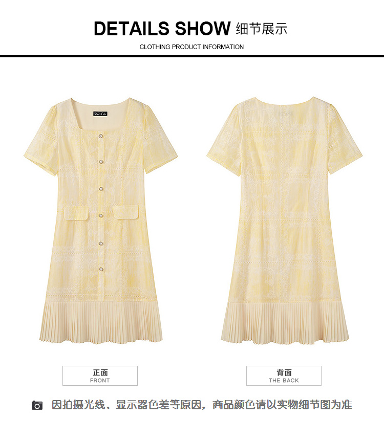 奢姿2026大码女装刺绣蕾丝连衣裙胖妹妹夏季方领遮肉温柔风A字裙9962860008