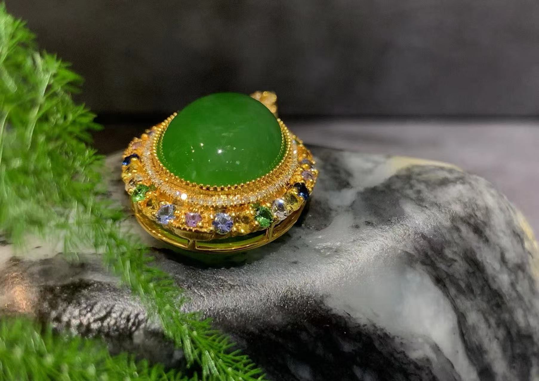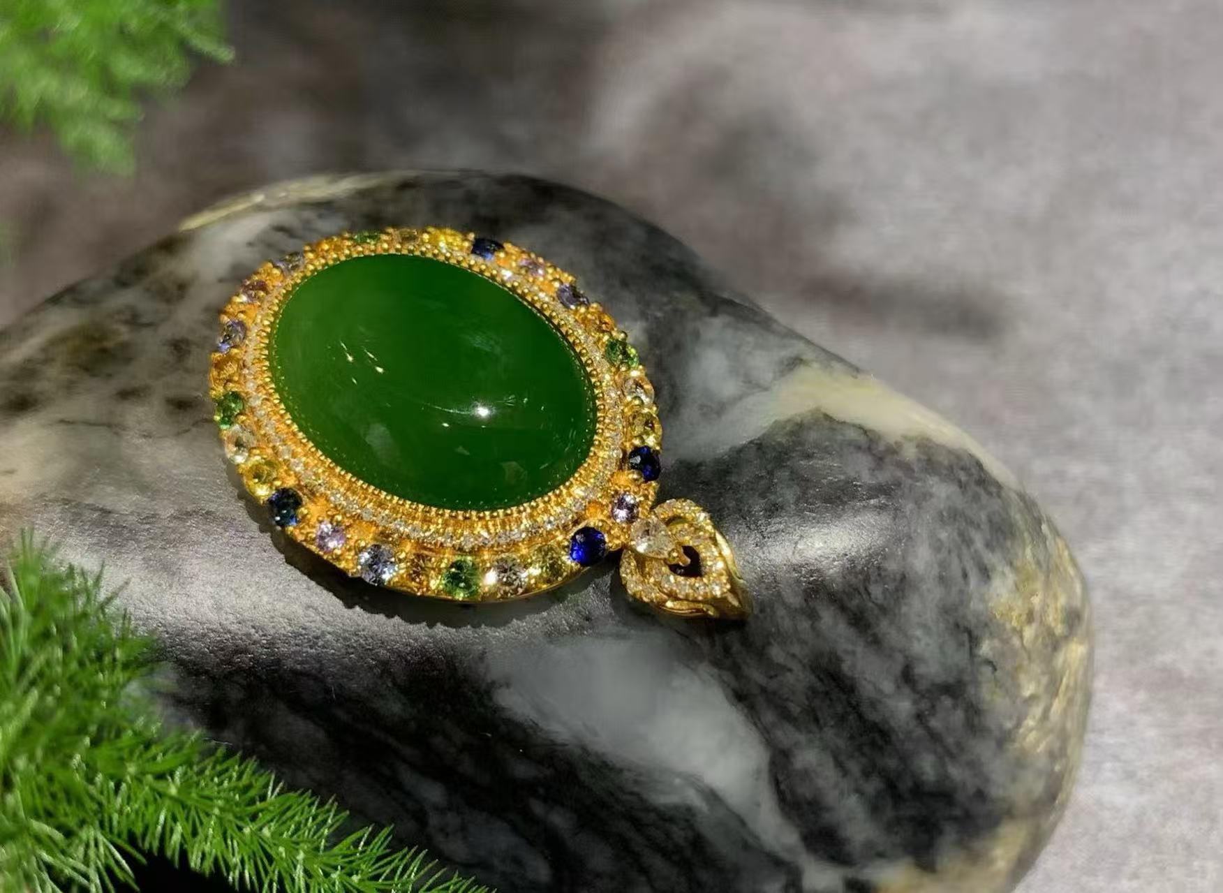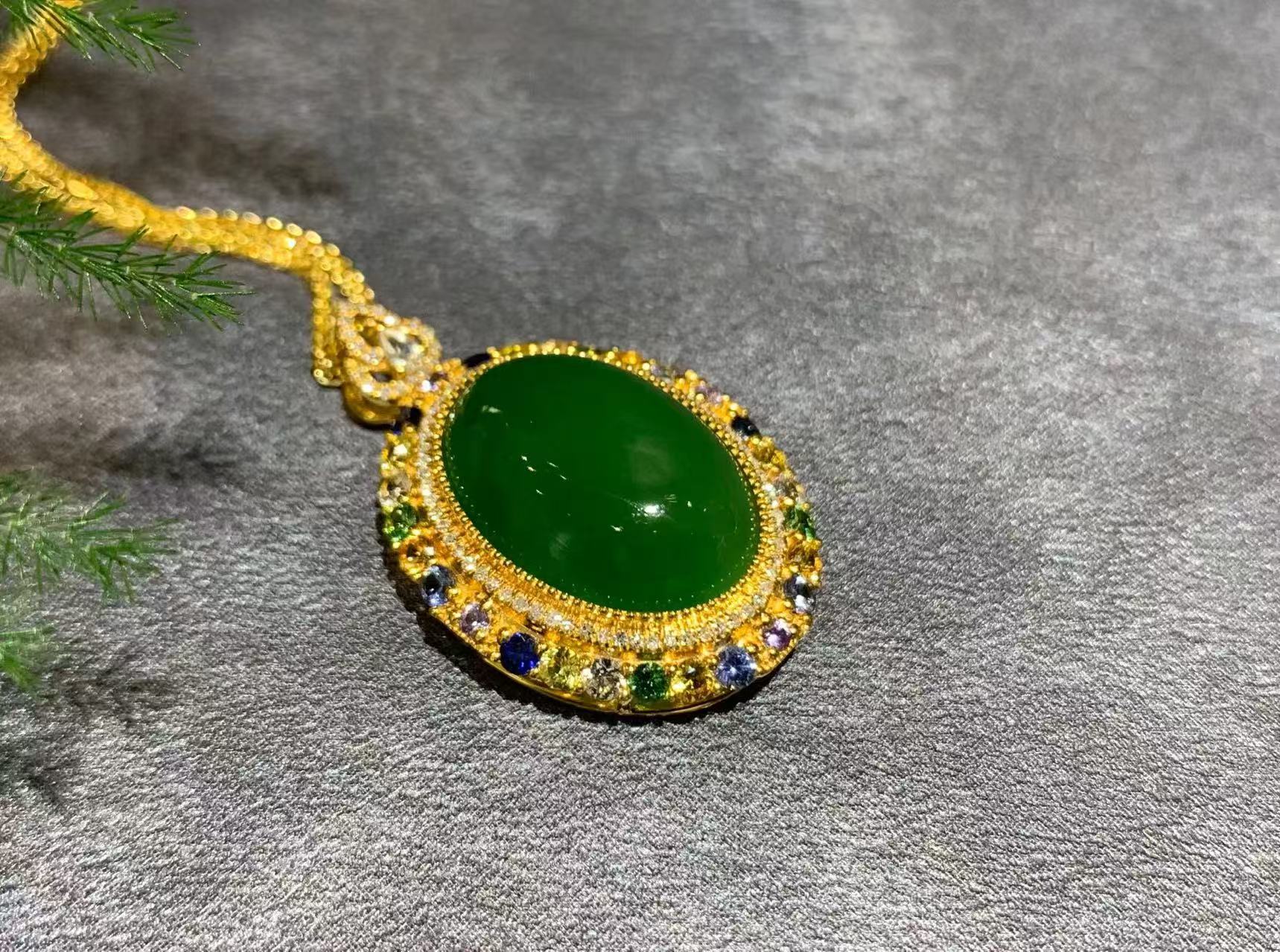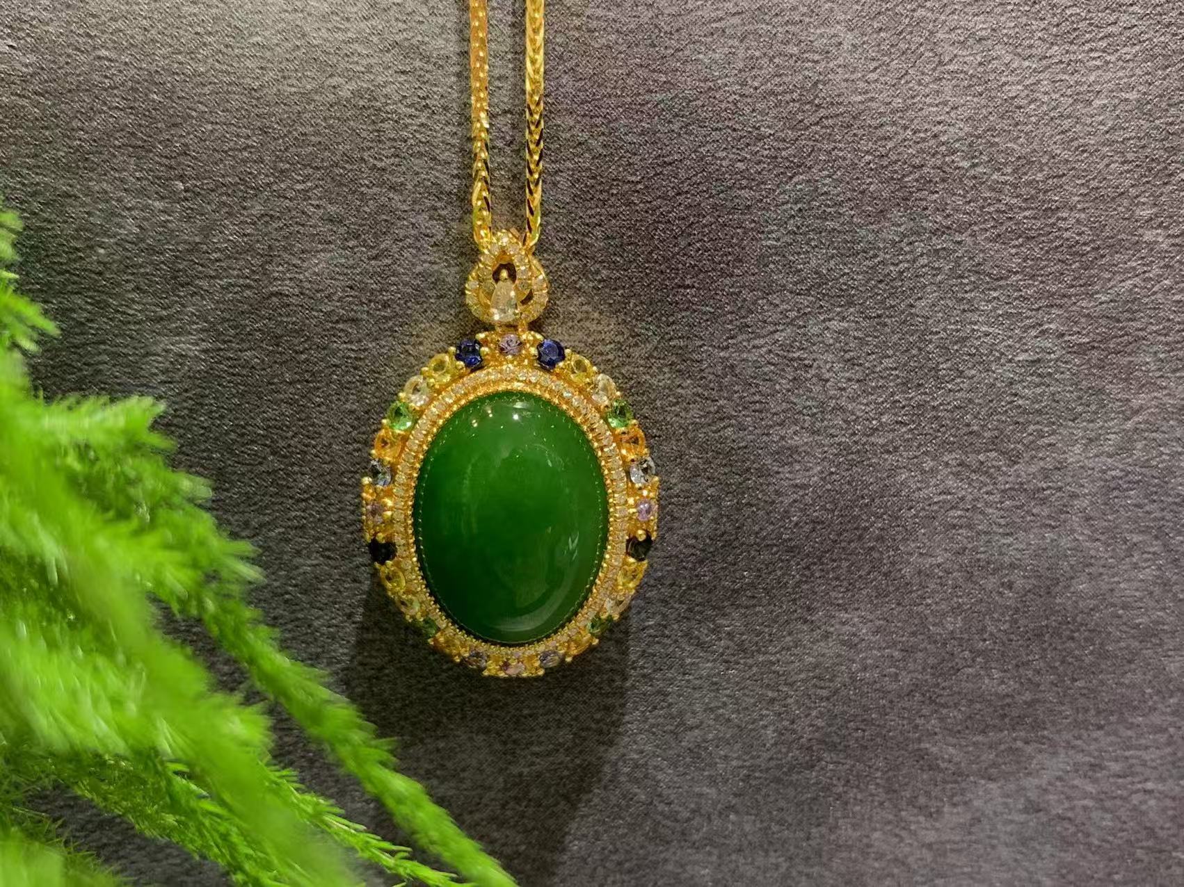 【御珠宫坊】新疆黑羊洞金镶碧玉吊坠