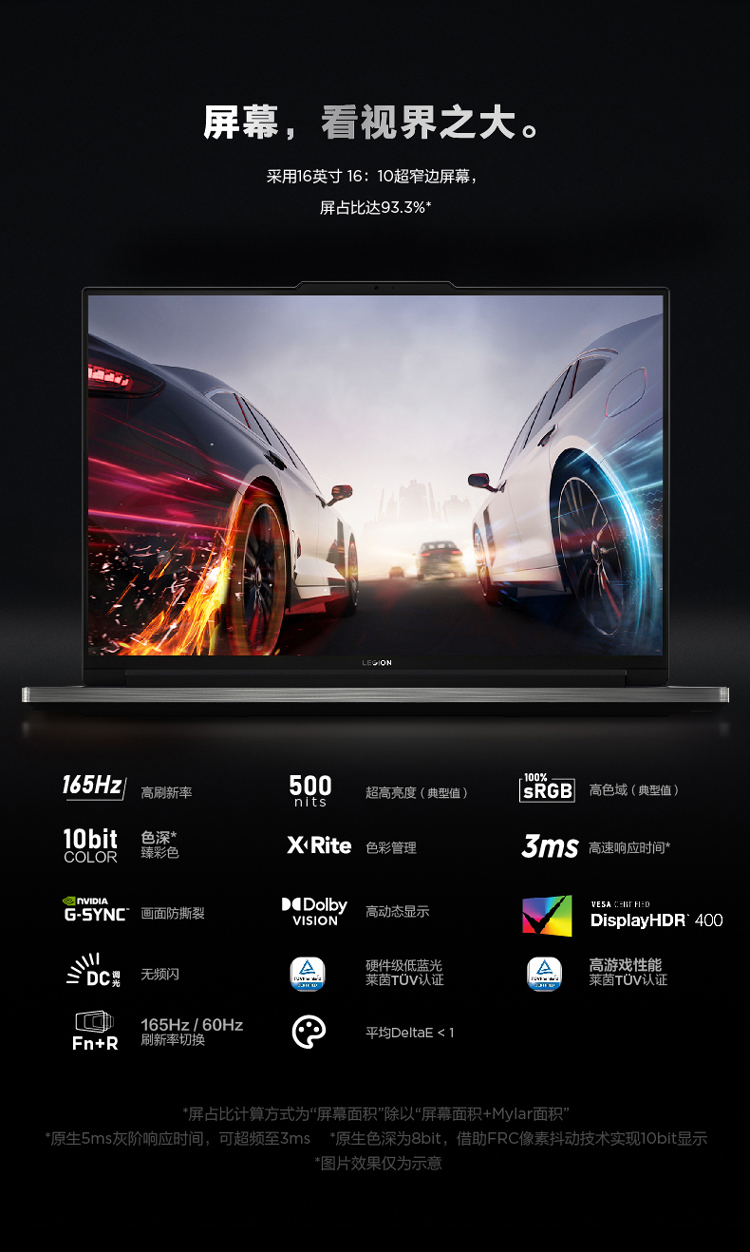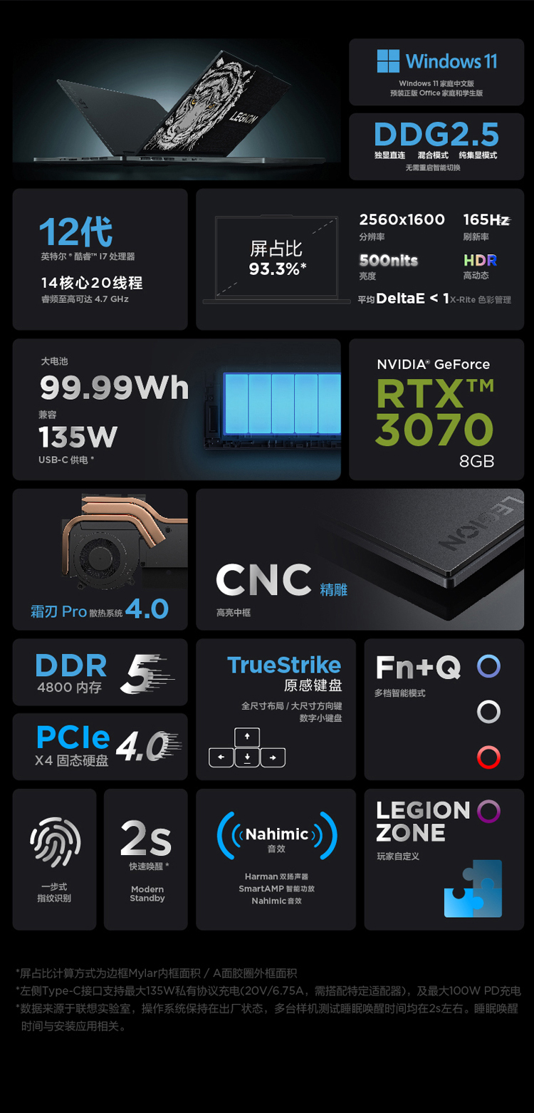 联想拯救者Y9000X 2022 16英寸游戏笔记本电脑(12代 i7-12700H 16G 512G RTX3070 2.5k 165Hz高色域)钛晶灰