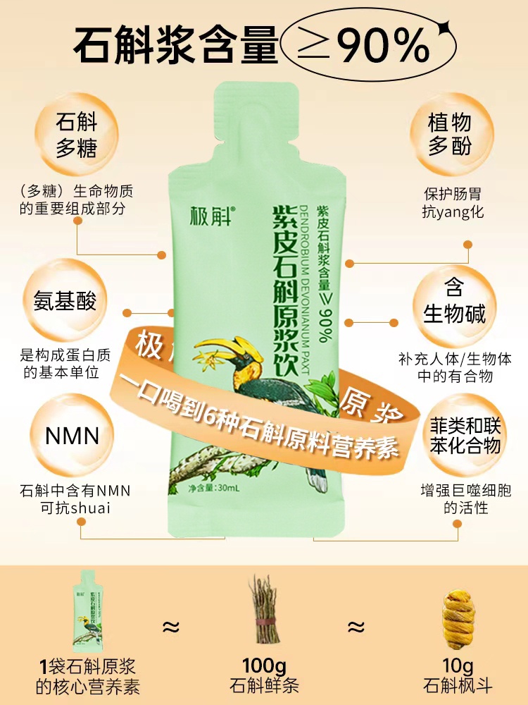 【袋装石斛原浆饮】石斛原浆≥90%,富含天然NMN!有效成分含量高,胶质浓郁!0糖无负担,易吸收!提升抵抗力,滋养润颜,生津清热等!【MS-J】