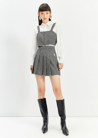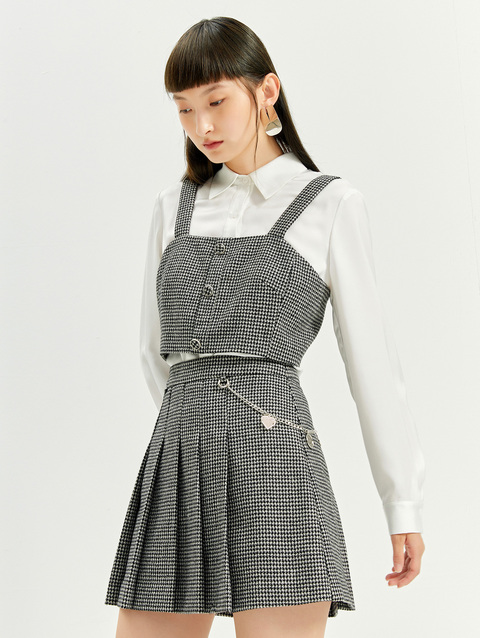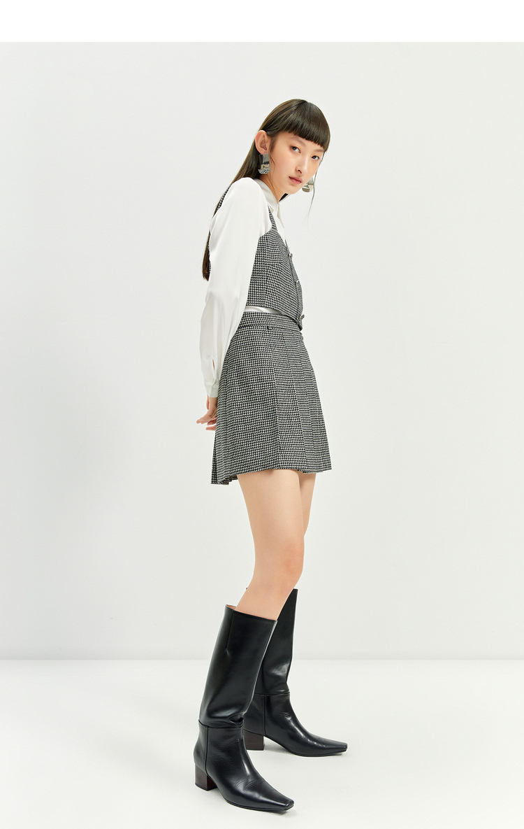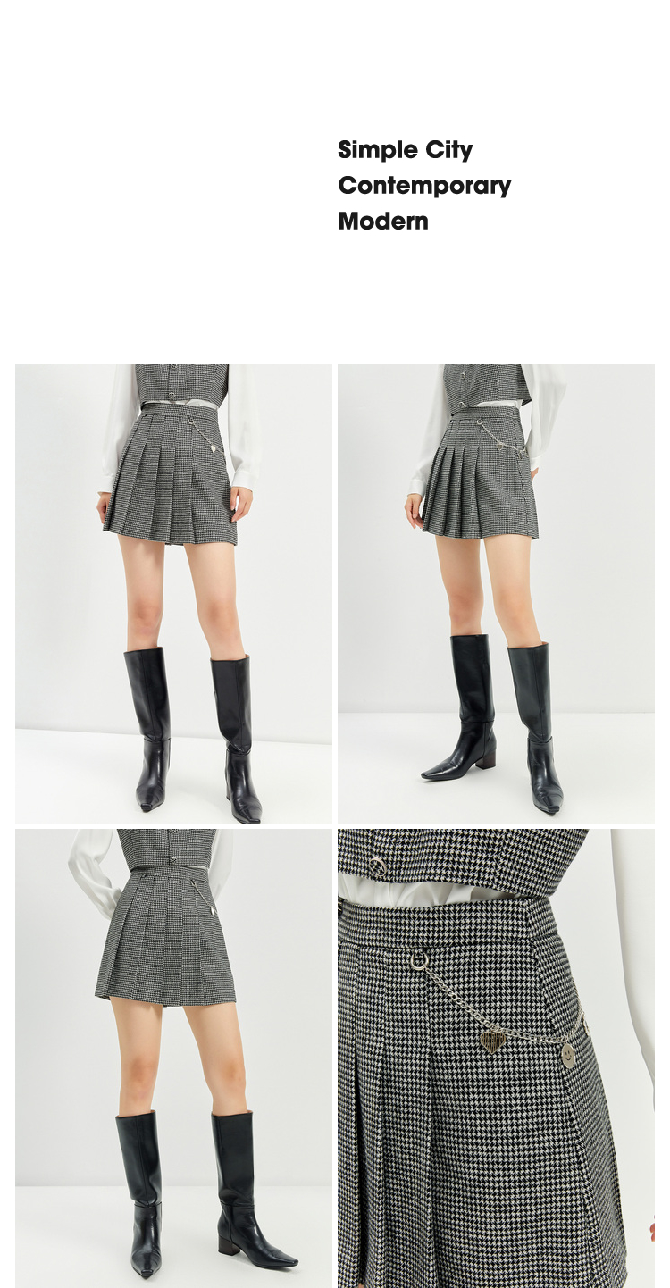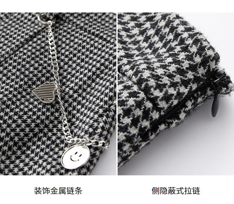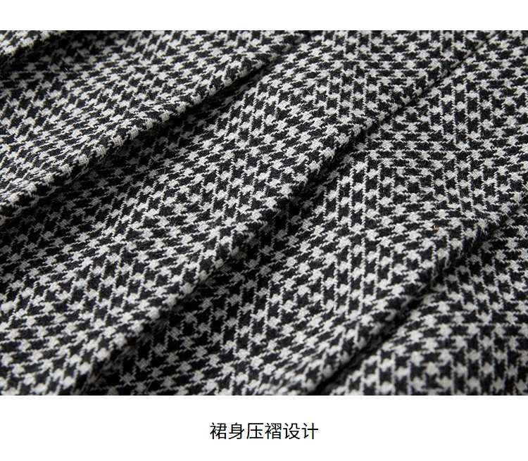 NEELLY纳俪商场同款半身裙女2021新款千鸟格高腰百褶裙羊毛A字裙N21101E01028