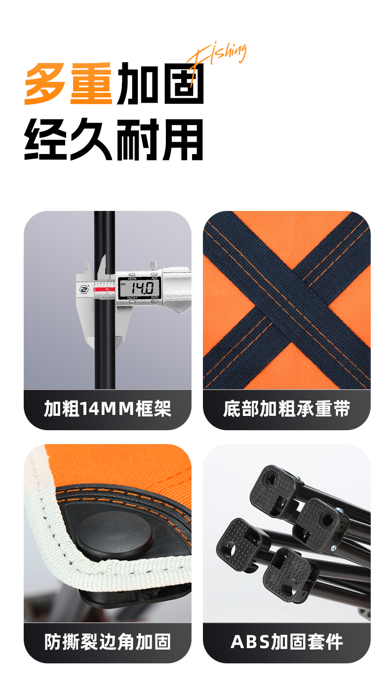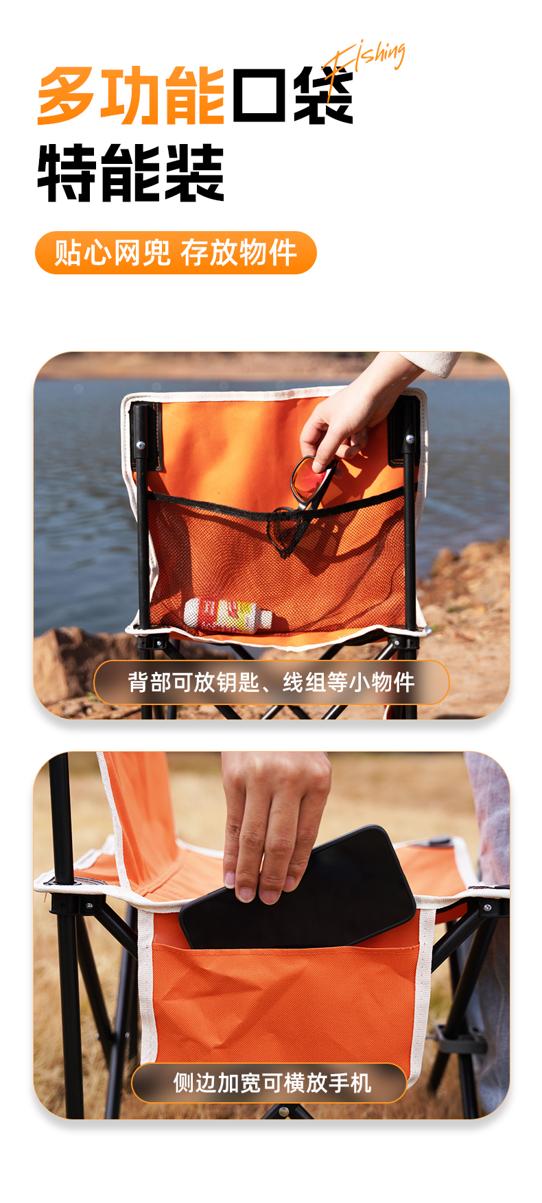 佳钓尼户外休闲垂钓露营野餐小钓椅写生凳子橙白色高颜值春日出游