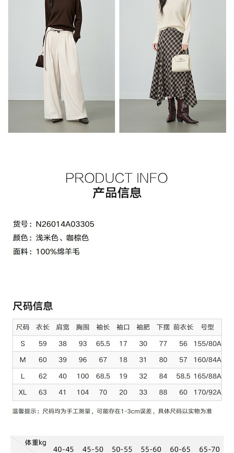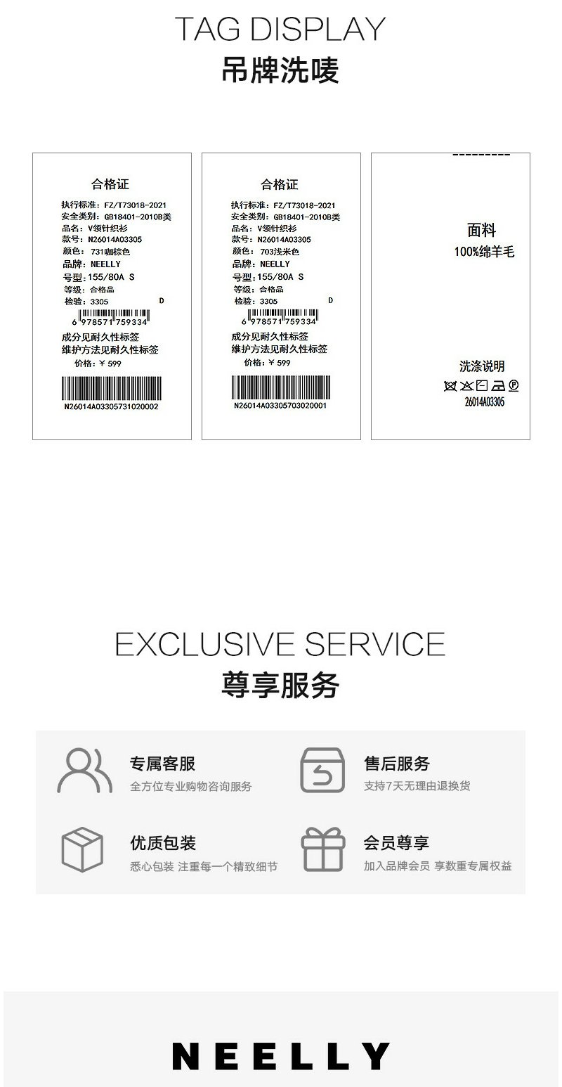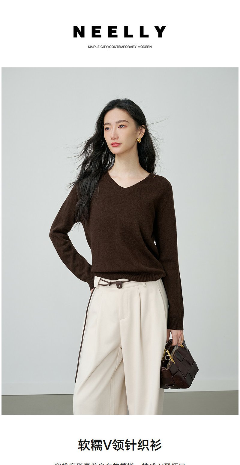 NEELLY纳俪商场同款春季新款软糯亲肤V领针织衫女显瘦百搭上衣N26014A03305