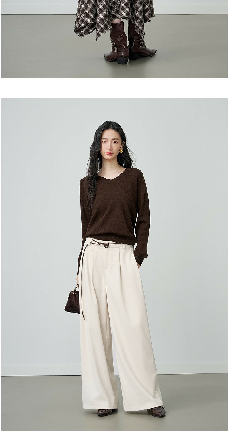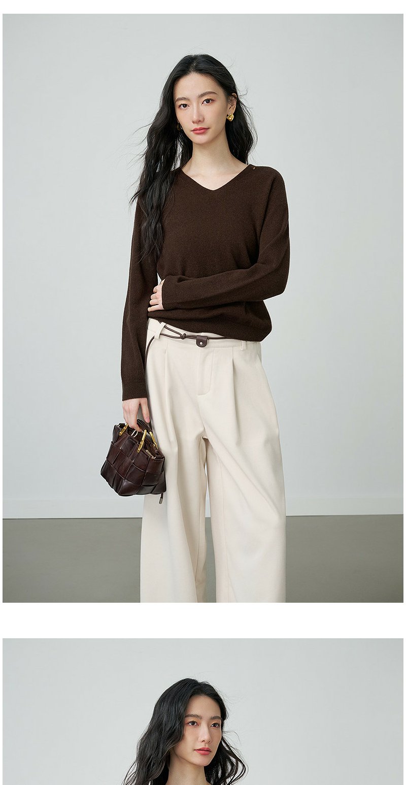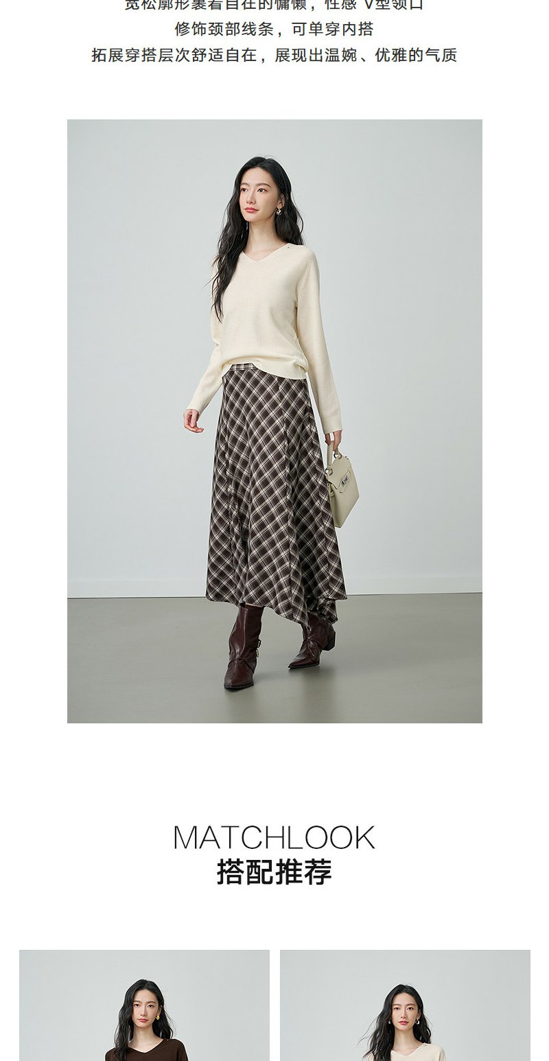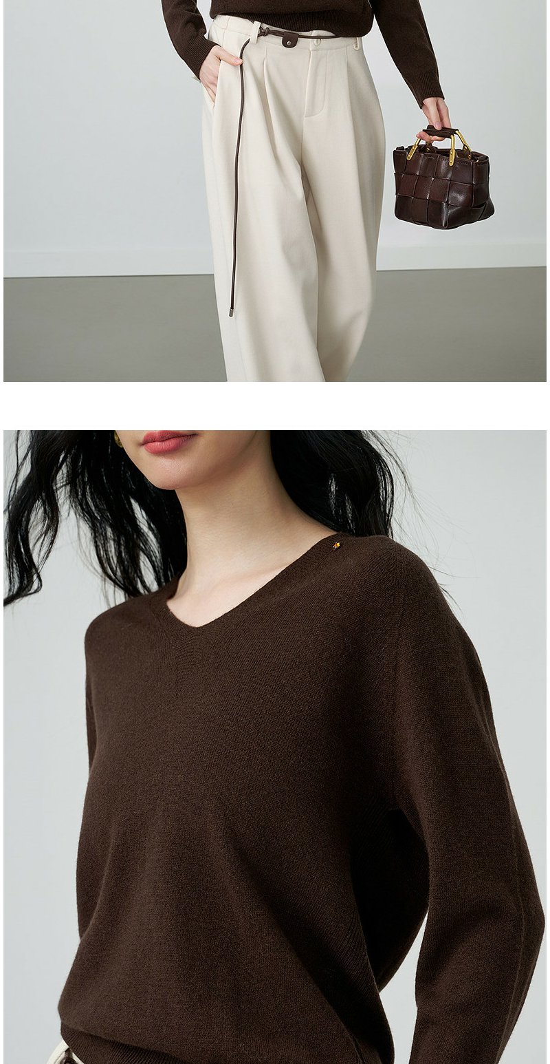NEELLY纳俪商场同款春季新款软糯亲肤V领针织衫女显瘦百搭上衣N26014A03305