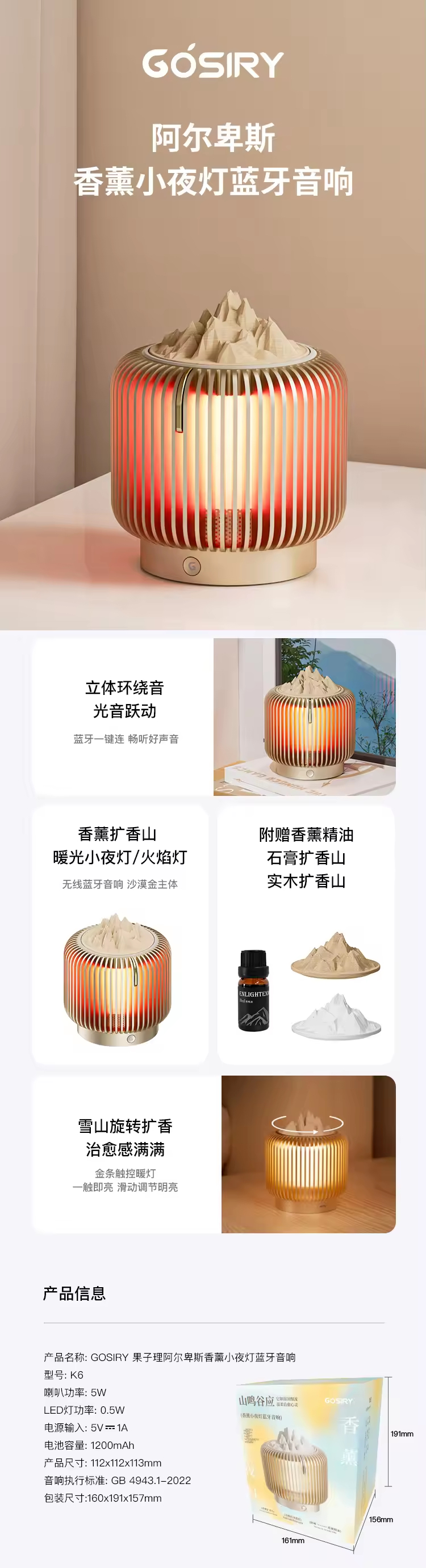 GOSIRY果子理 阿尔卑斯香薰小夜灯蓝牙音响-沙漠金