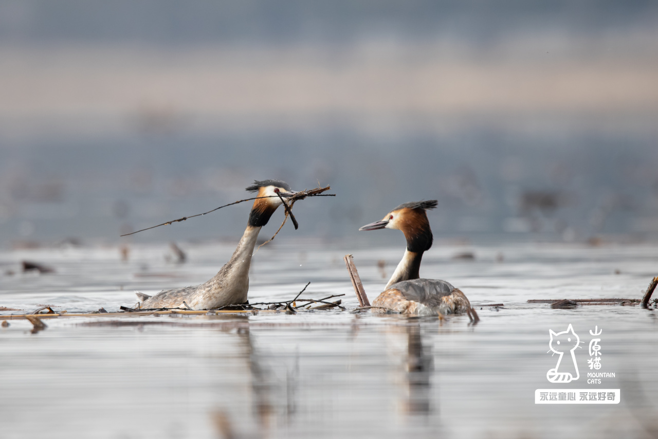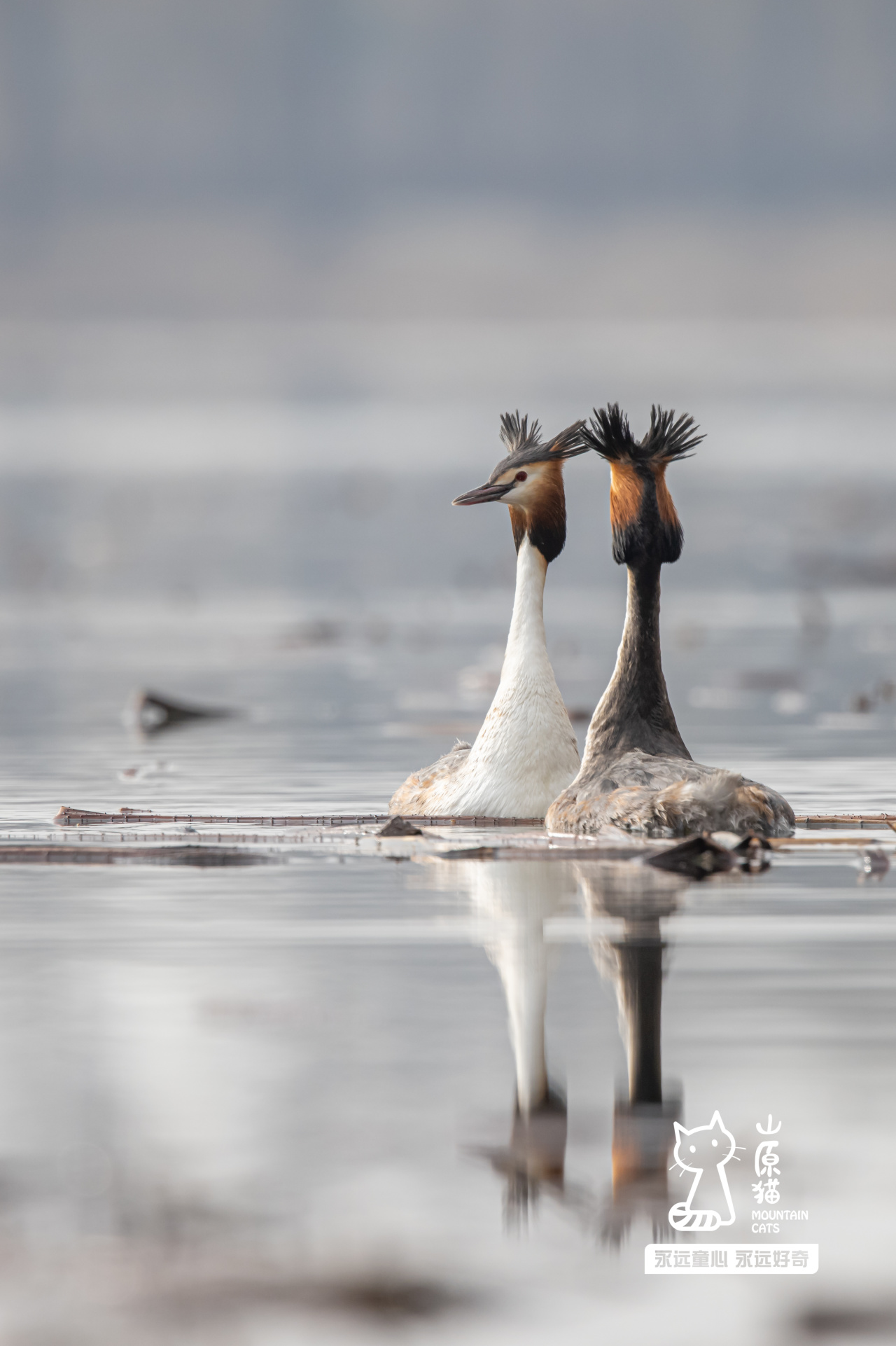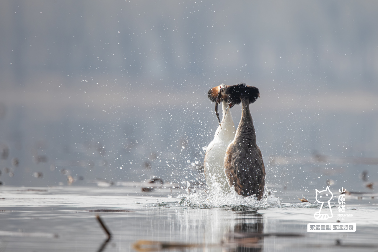 “每一年春天的颐和园都会发生一起大事,那便是著名的凤头䴙䴘的求偶。跟其他鸟类一样,凤头䴙䴘也会在春天繁育它们的后代,跟其他鸟类不同的是,凤头䴙䴘父母在育幼之前每一年都要重新来一次求爱的仪式——在偌大的湖面上或是点头致意,或是出双入对,或是在水面上一起跳一支爱的舞蹈。这也是一年当中观察它们最好的时候:丰富的行为、华丽的羽毛、美好的天气。在春日里观察鸟类有趣的行为,在观察里收获生命与湿地环境的知识。