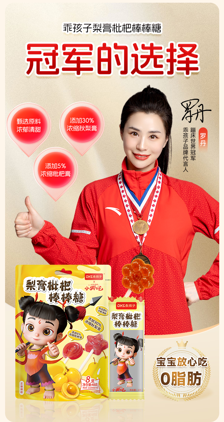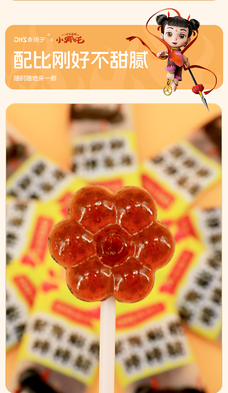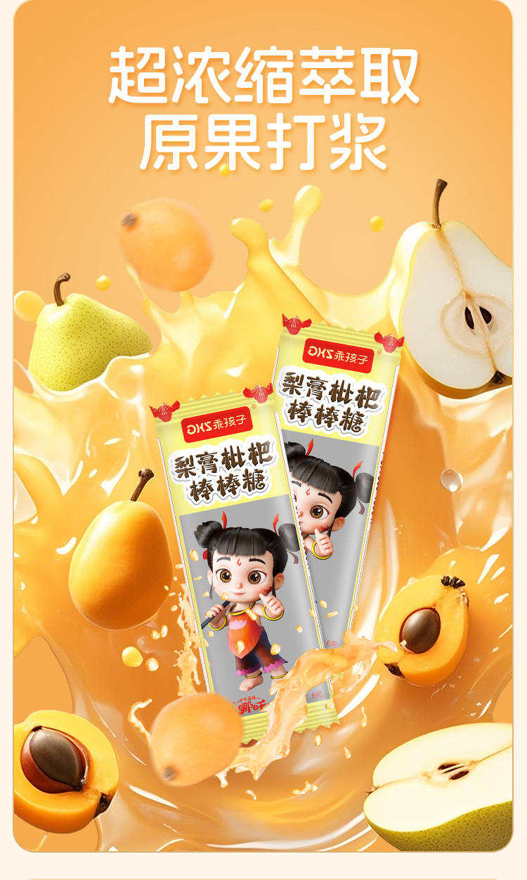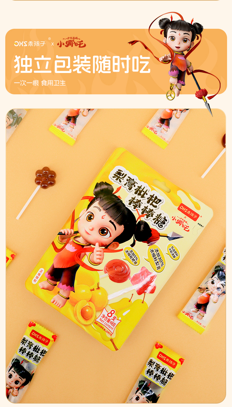 【3袋装】乖孩子新品小哪吒梨膏枇杷棒棒糖儿童零食小熊萌趣造型48g
