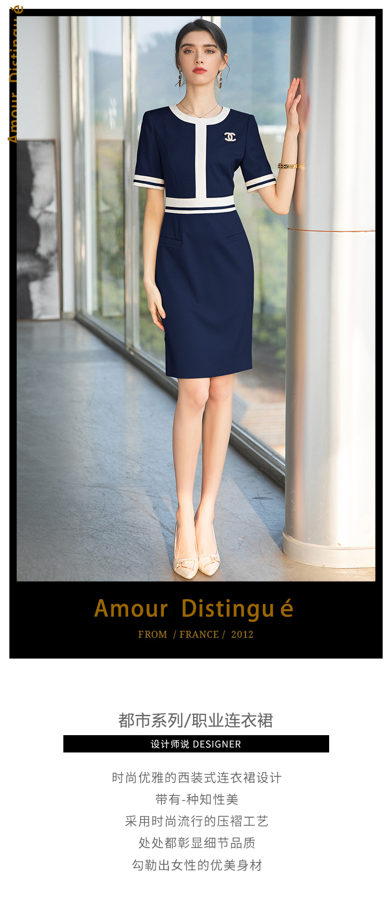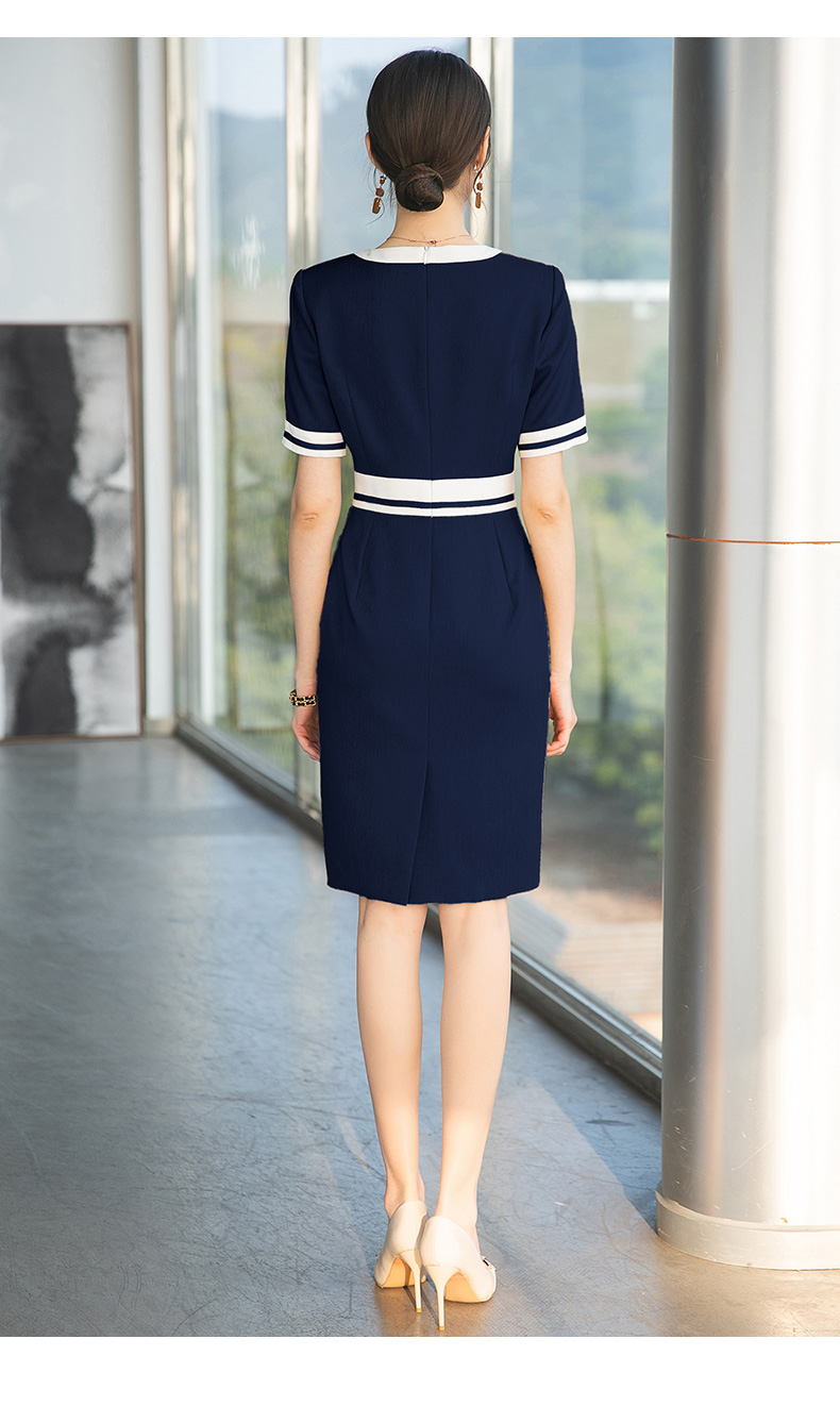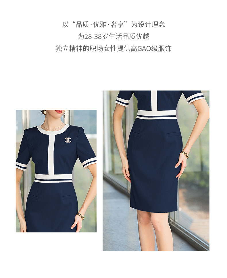 IWY/气质藏青职业西装连衣裙女前台接待正装美容院工作服播音艺考套裙Q710-ZL