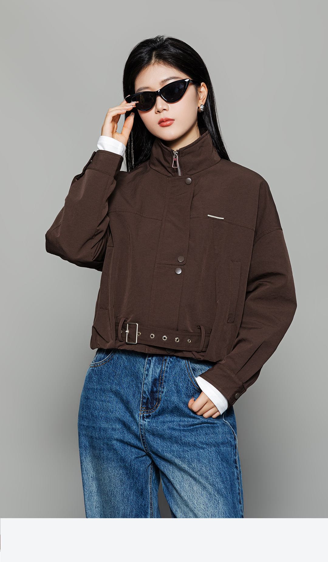 冬上新棕色时尚百搭轻松打造慵懒高级感工装风夹克2254091