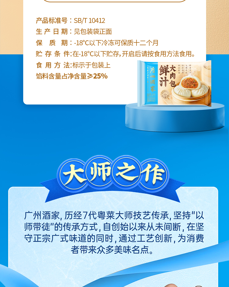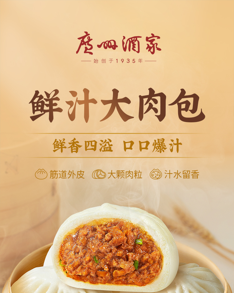 广州酒家鲜汁大肉包390g*2袋方便速冻食品早餐包子广式早茶点心