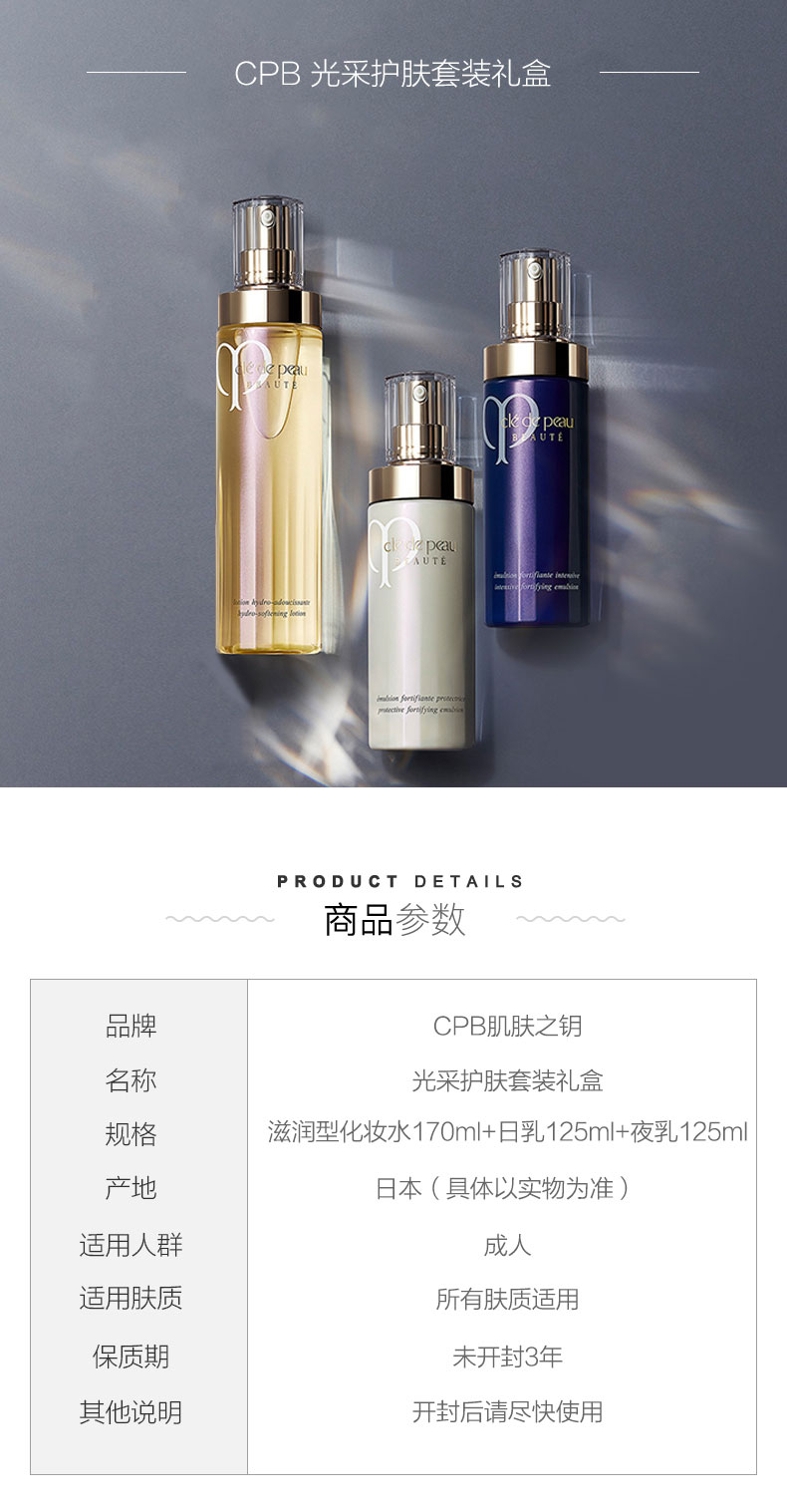 【保税仓直发·全球购·蚂蚁链可扫码溯源】CPB肌肤之钥光采赋活水乳三件套 水(湿润型)170ml/瓶+日防护乳125ml/瓶+夜防护乳125ml/瓶【爆款专属】『此链接商品请分开拍单-合并下单不发货』