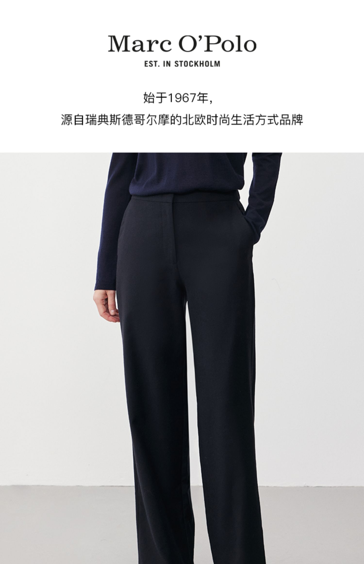 【100%绵羊毛】Marc O'Polo/MOP2024冬季新款垂感直筒休闲裤女士