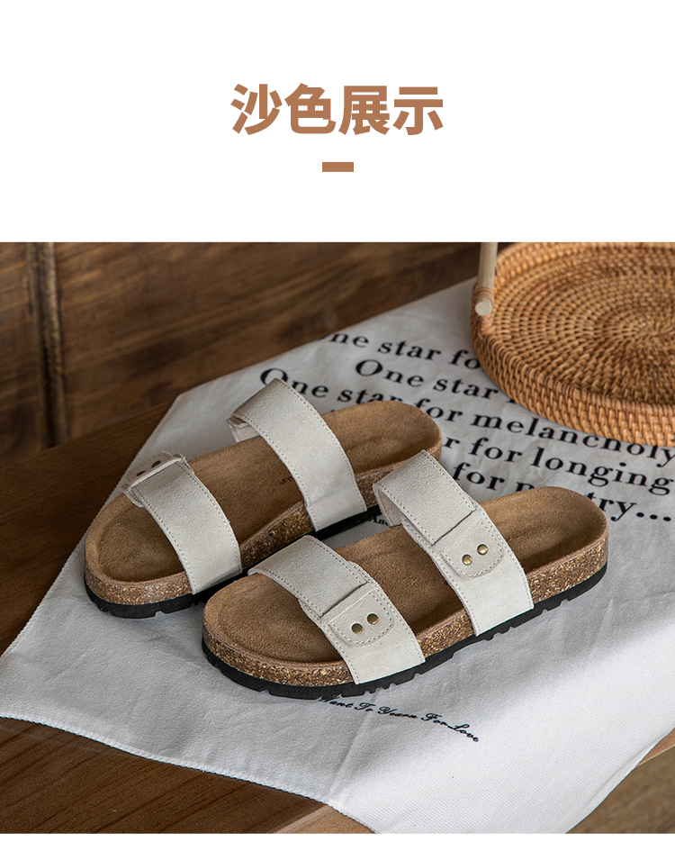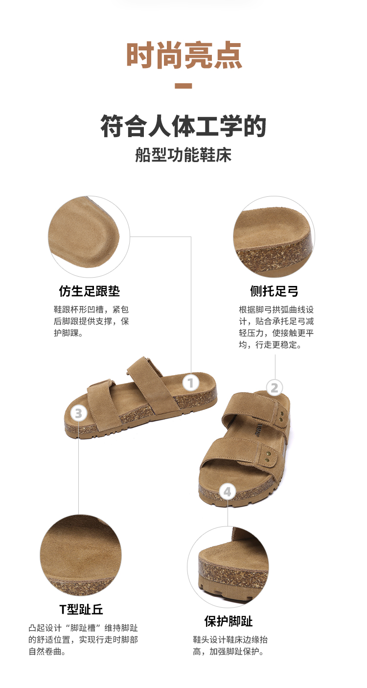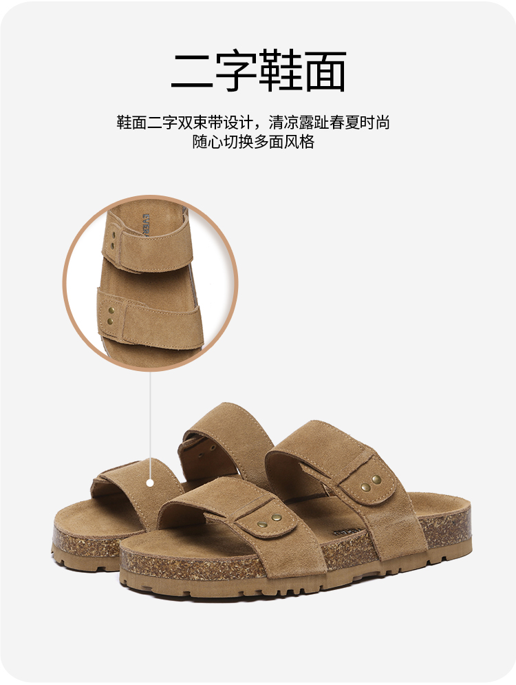 EVERAU简约高级蓝热一脚蹬双带休闲复古拖鞋EA2053 商品图2