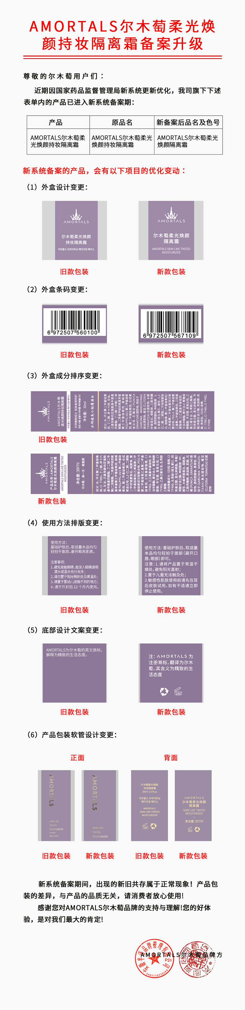 尔木萄柔光焕颜持妆隔离霜30ml/支