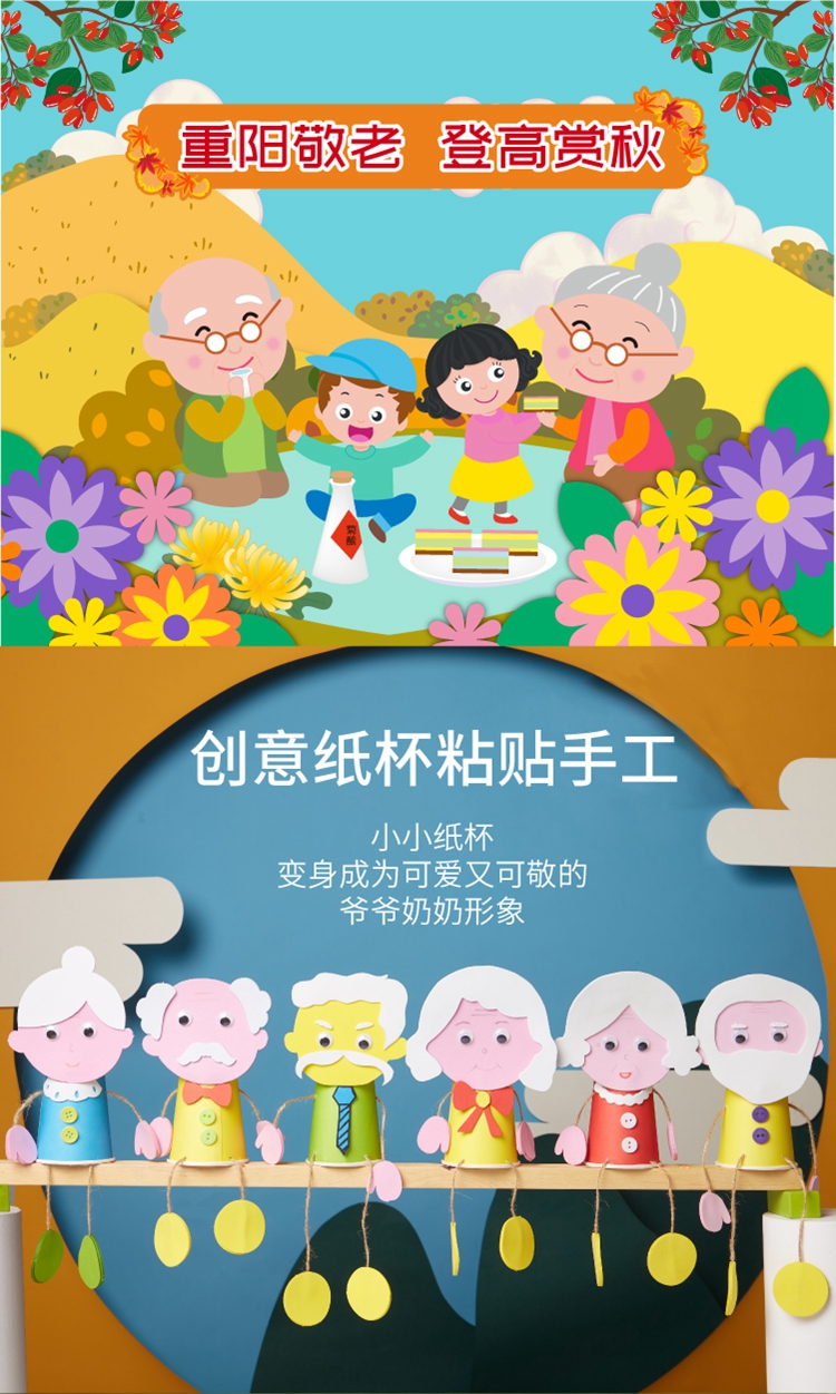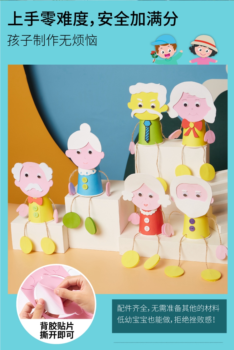 重阳节手工diy重阳节爷爷奶奶纸杯制作材料包幼儿园儿童敬老礼物
