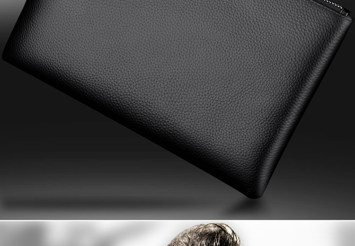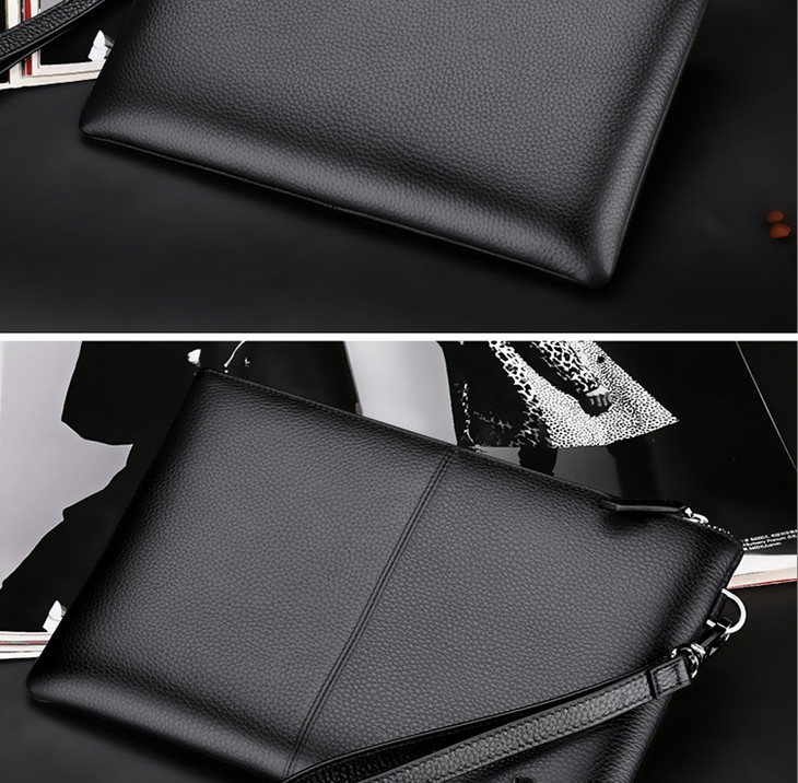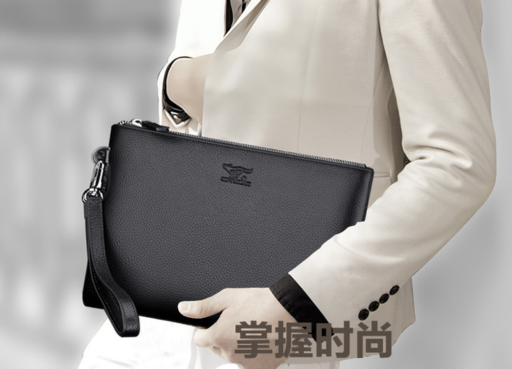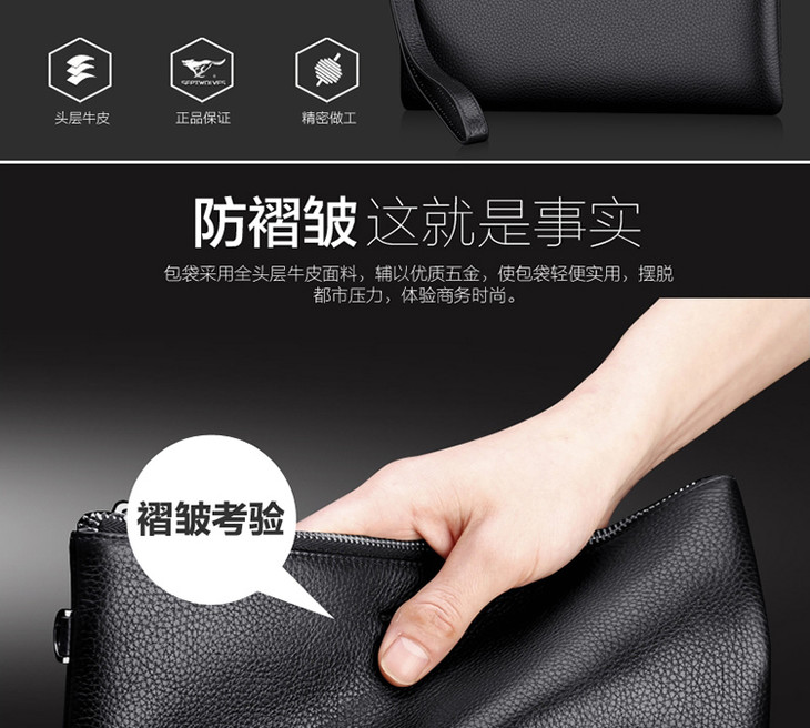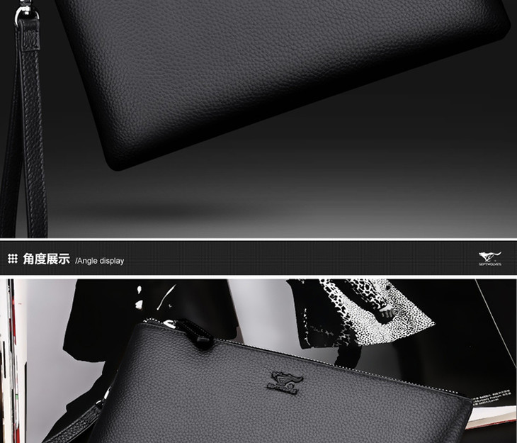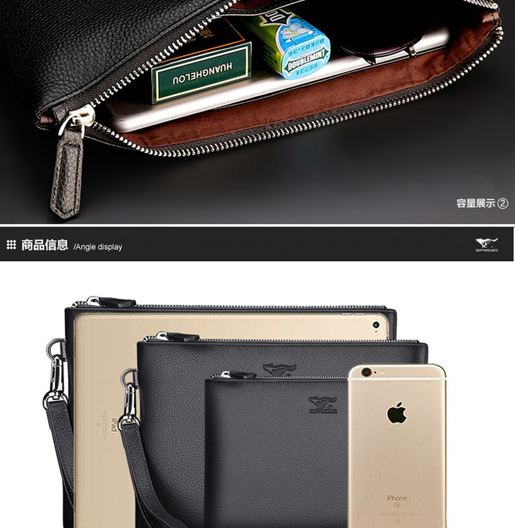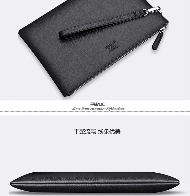 七匹狼男士手包 头层牛皮时尚潮流男包手拿包信封包1A1172101-01小号黑色