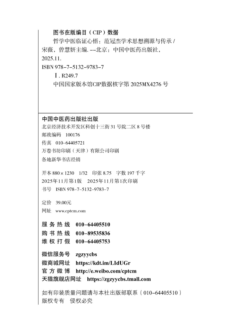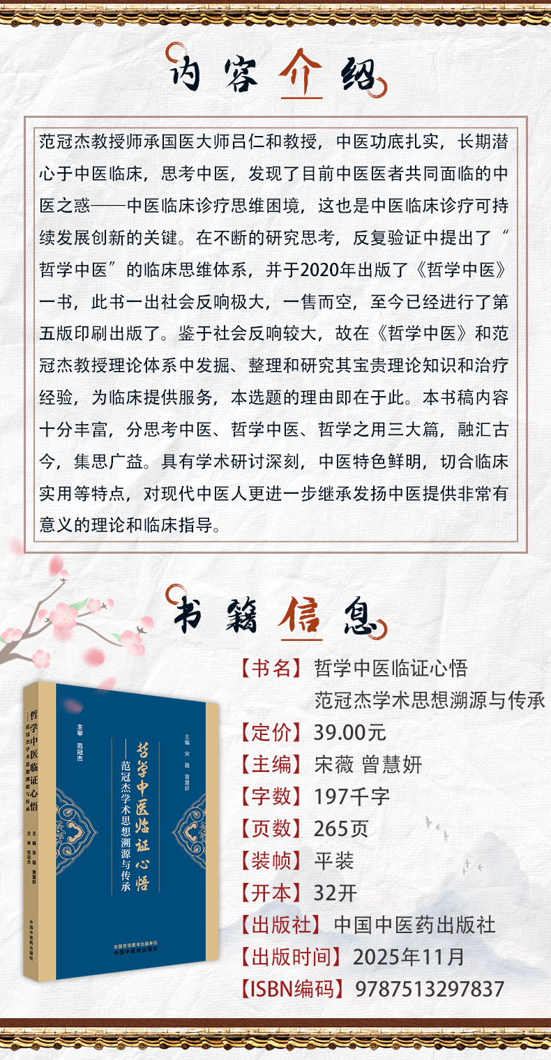 书名:哲学中医临证心悟 范冠杰学术思想溯源与传承