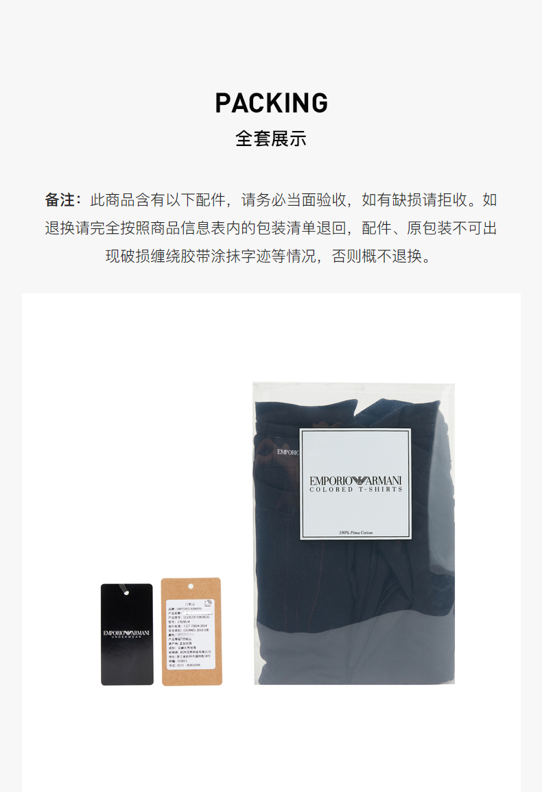 EMPORIO ARMANI 阿玛尼 EA 男士鹰标纯棉修身短袖T恤 2件装 8N1D68 1JPZZ