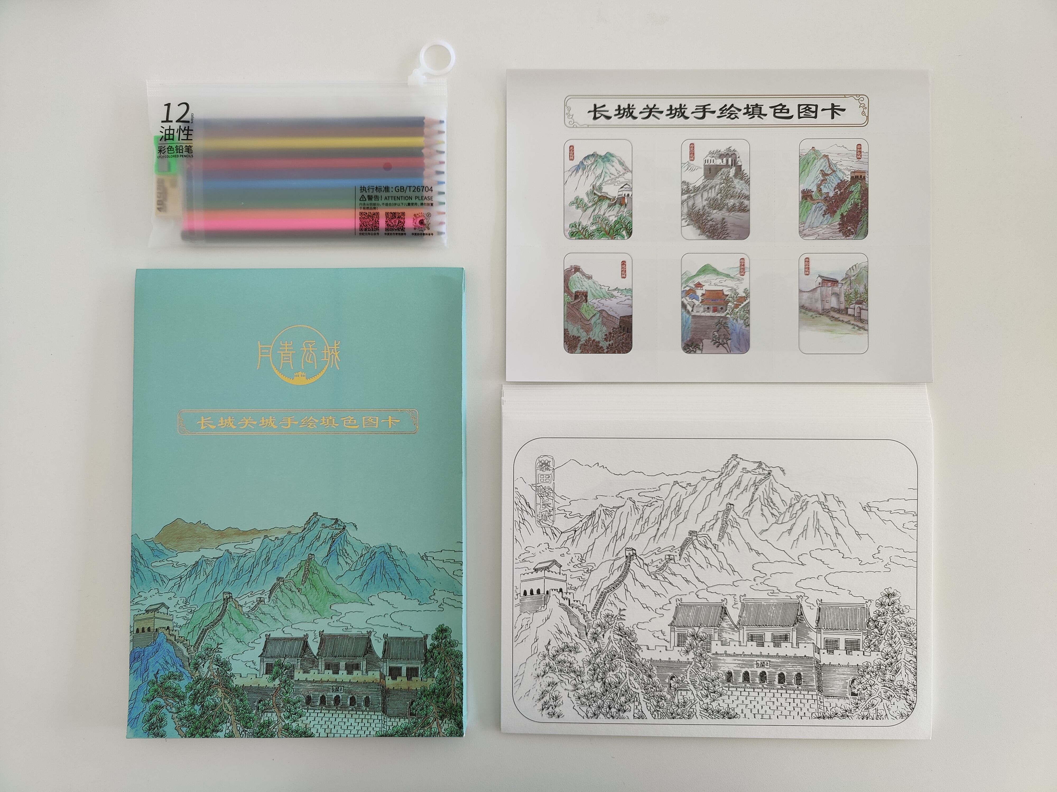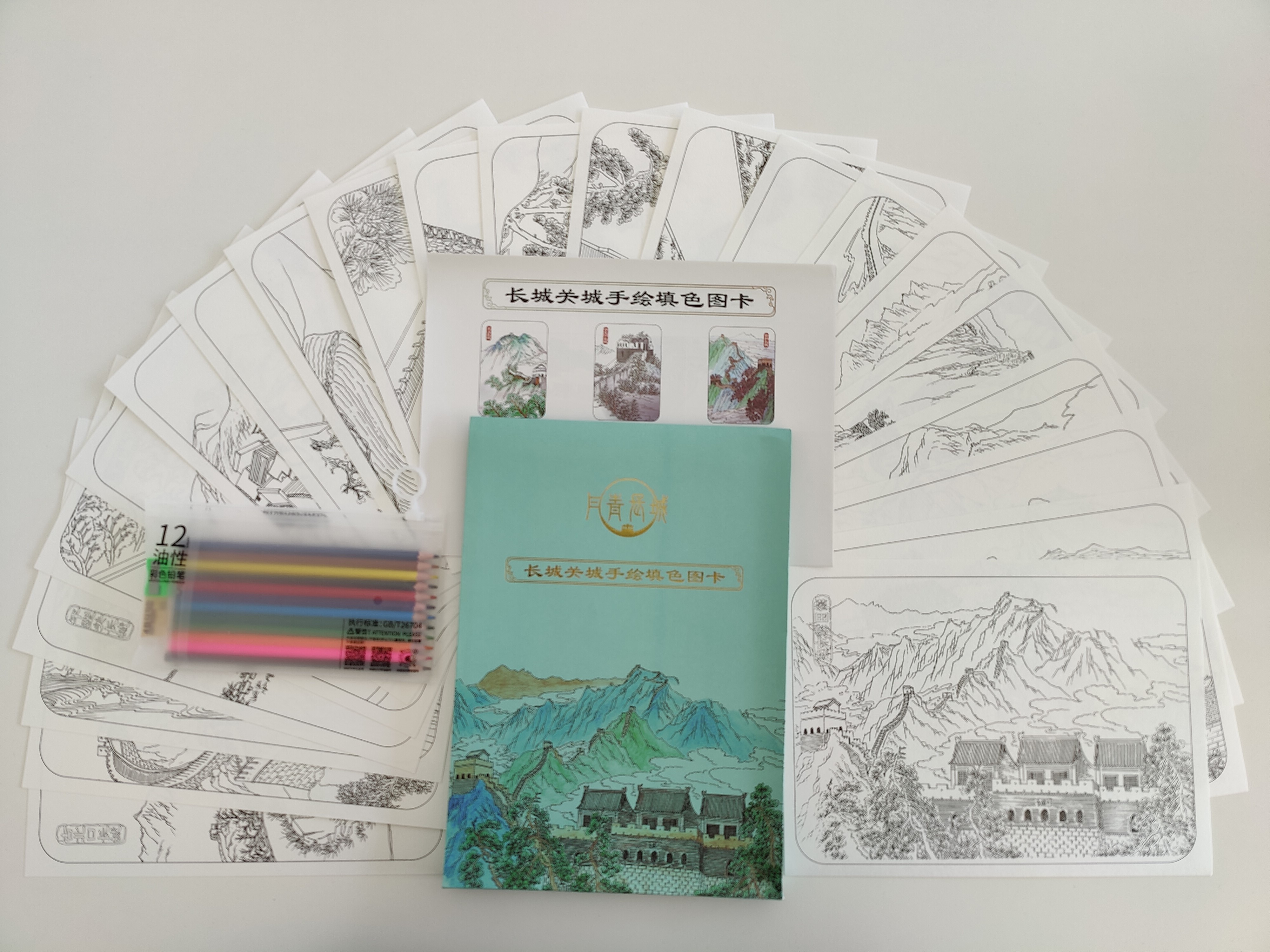 华夏好丹青长城关城手绘填色图卡(内含22张可填色图卡+5张样图+12色彩铅一套+橡皮1块+转笔刀)