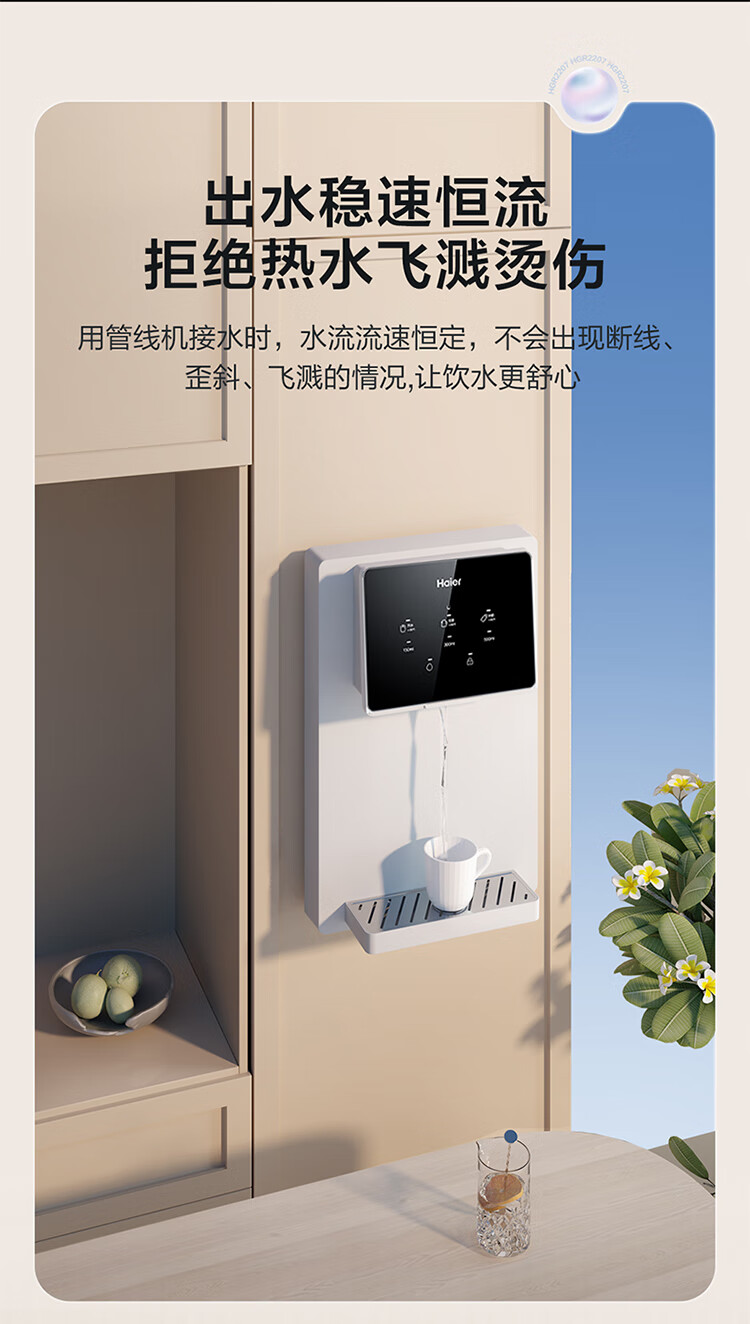 【以旧换新】【海尔HGR2207】海尔(Haier)管线机 壁挂式饮水机 家用无胆即热式直饮机厚膜速热 4档水温调节净水器伴侣HGR2207
