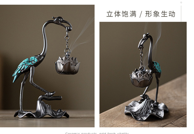 小仙鹤香炉套装 香炉+沉香+檀香盘香 香薰炉摆件