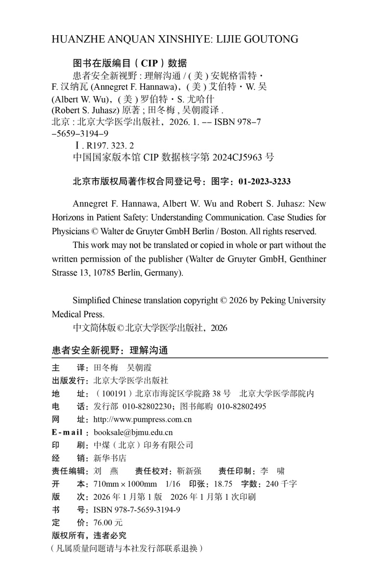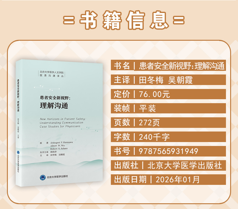 书名:患者安全新视野:理解沟通 北京大学医学人文学院医患沟通译丛