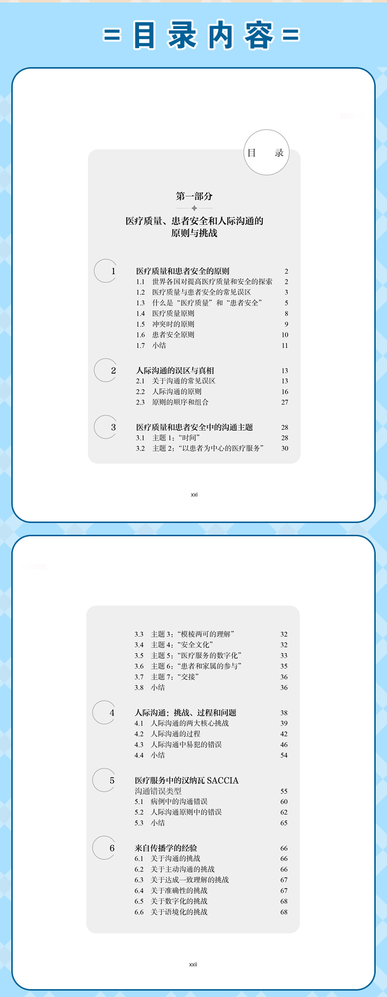 理论部分介绍医疗质量、患者安全和人际沟通的原则与挑战等理论框架;实践部分提供39个重要病例,说明患者安全中长期存在的“热点话题”