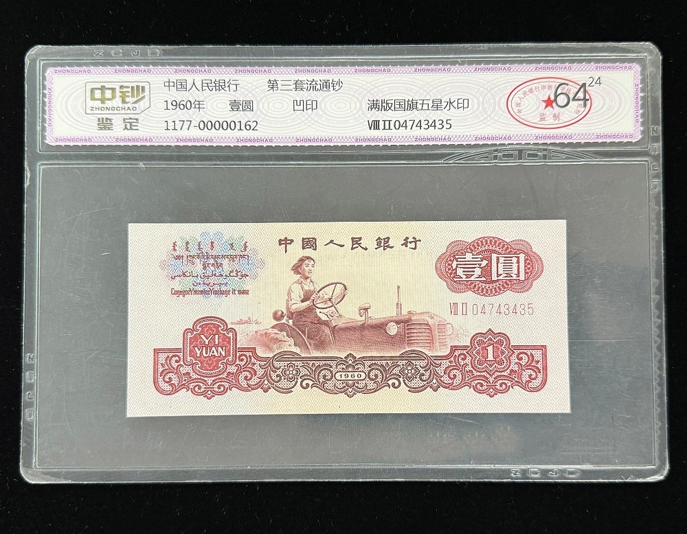 【中钞评级】第三套壹圆 满版五角星水印 64分