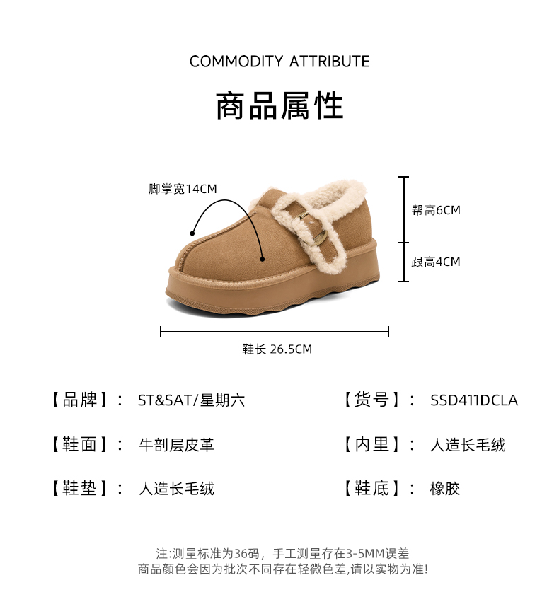 星期六保暖加绒厚底勃肯SSD411DCLA
