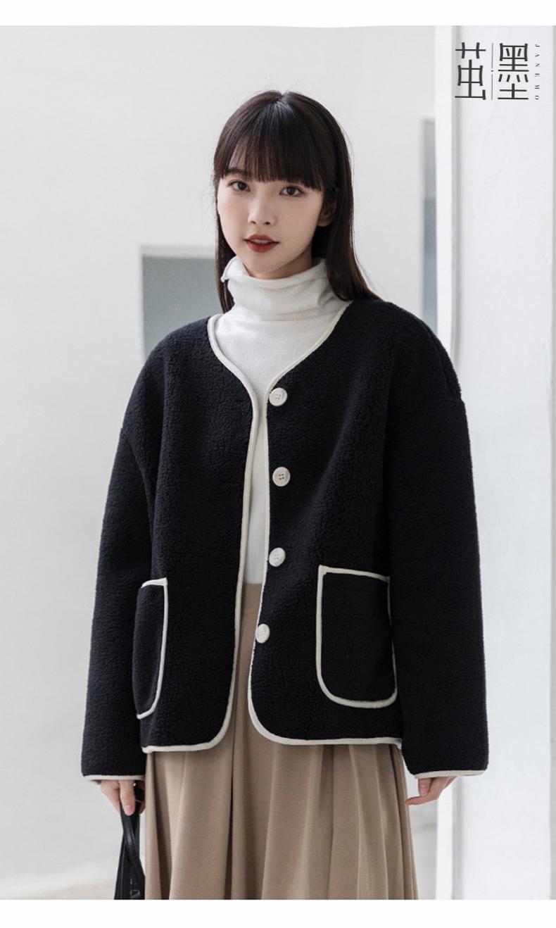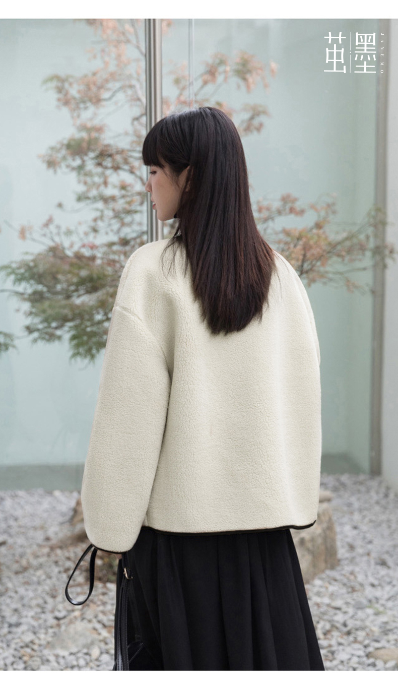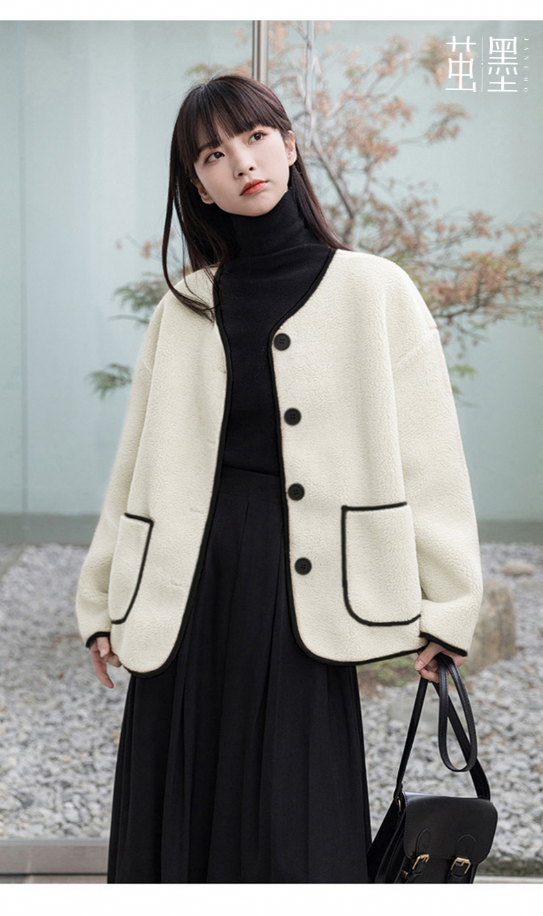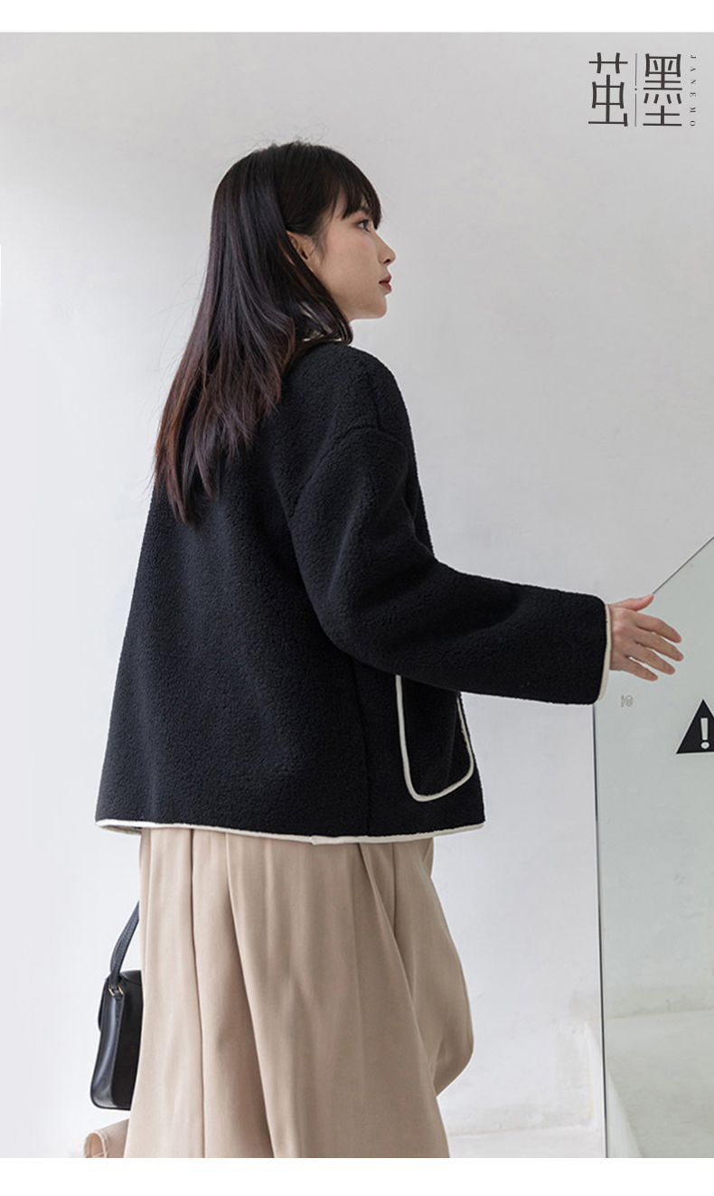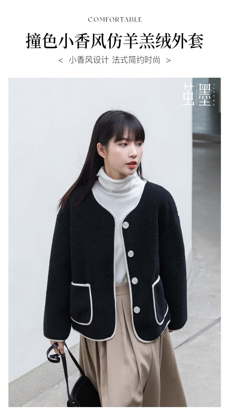 茧墨 撞色小香风仿羊羔绒外套
