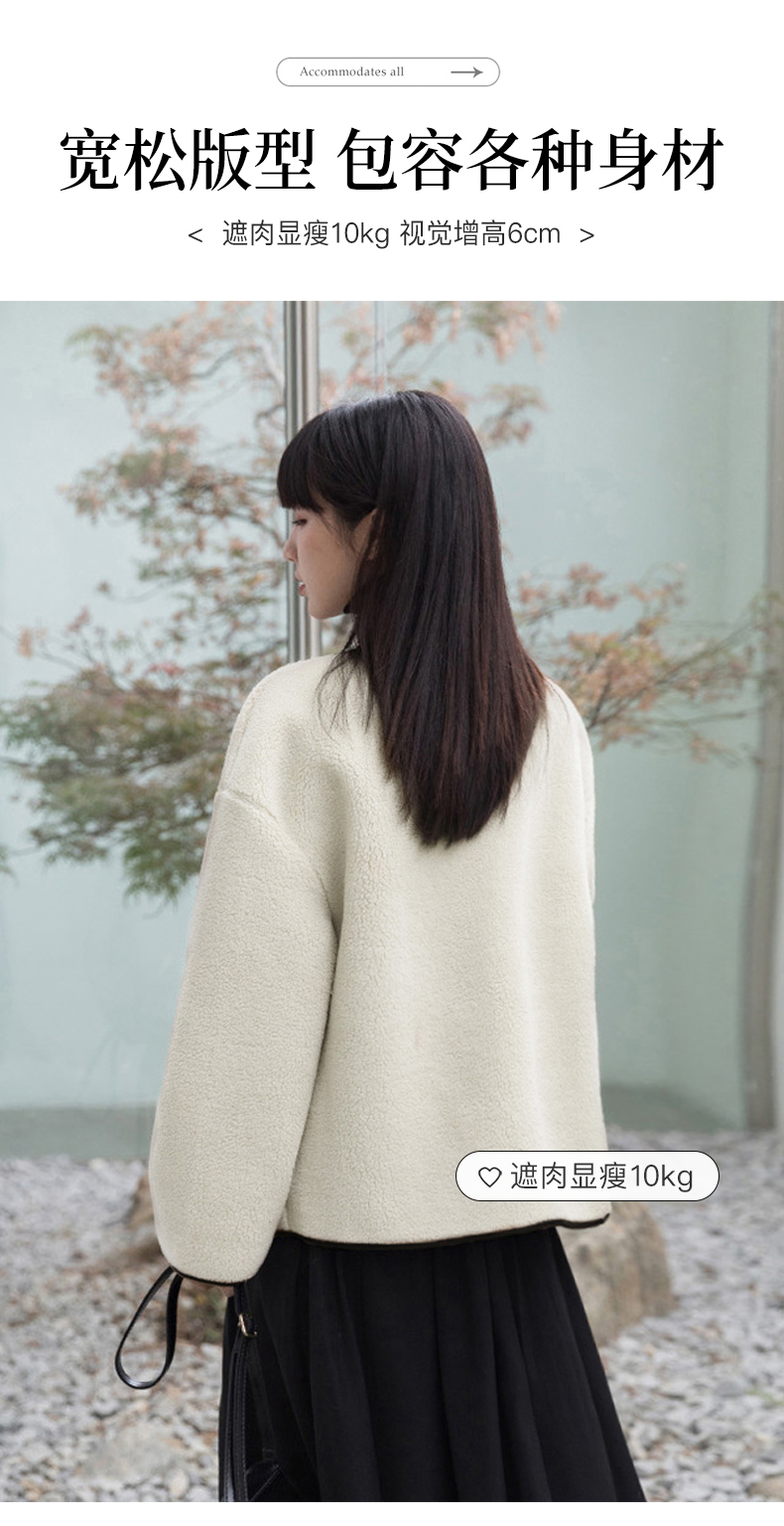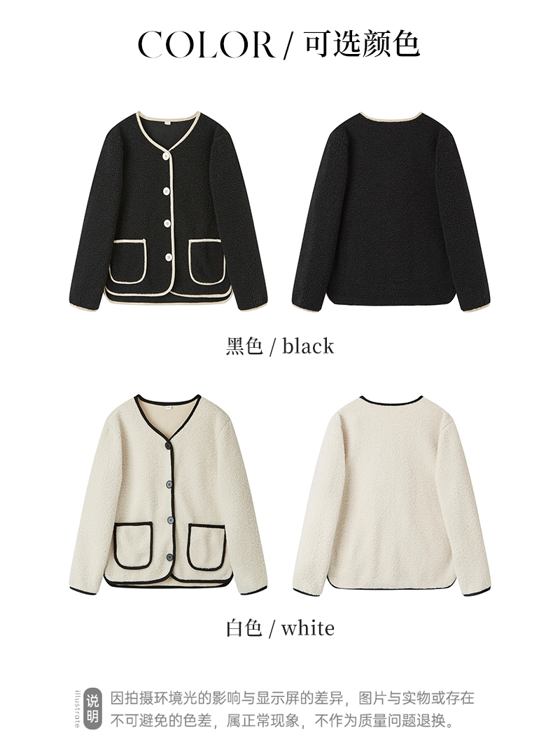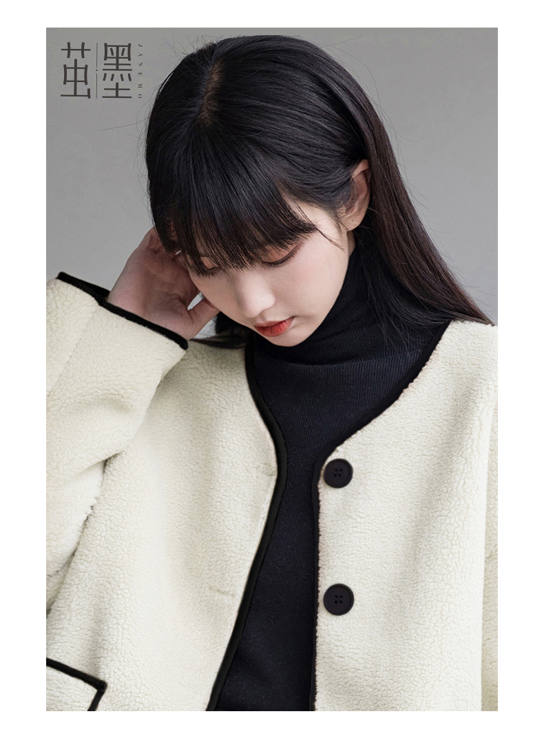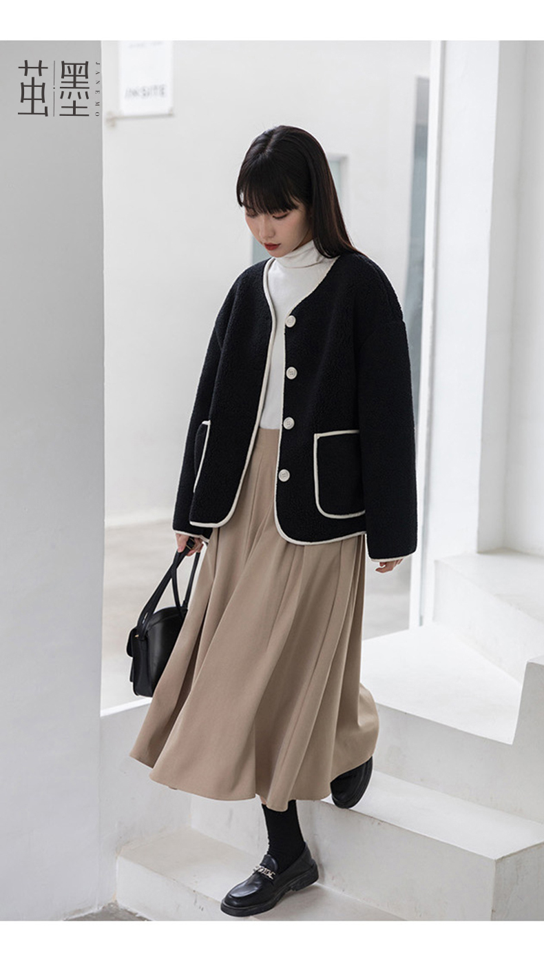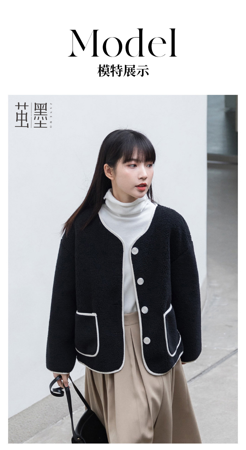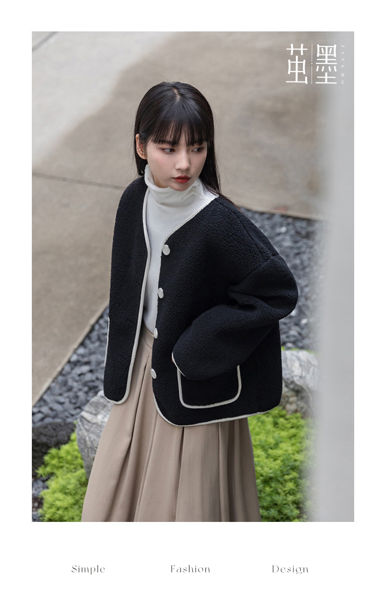 茧墨 撞色小香风仿羊羔绒外套