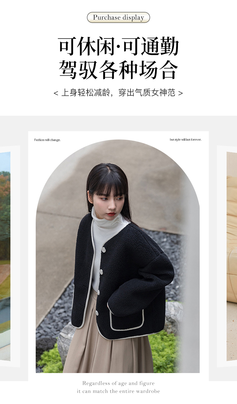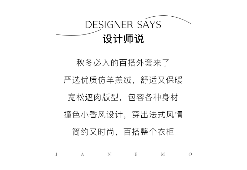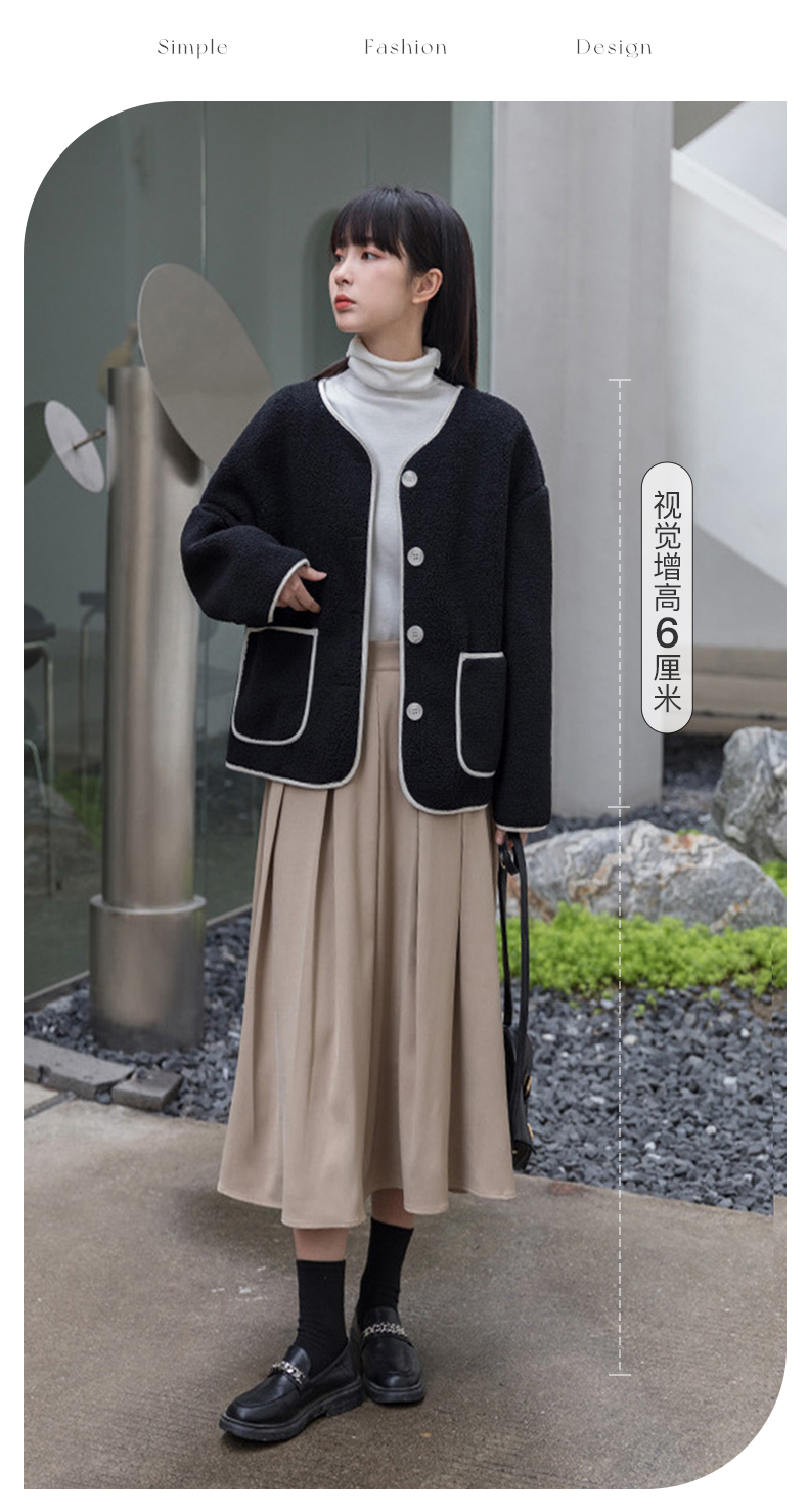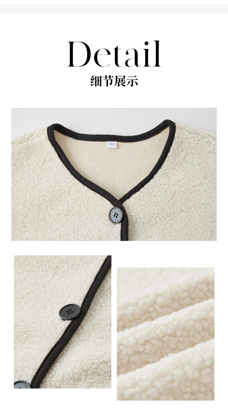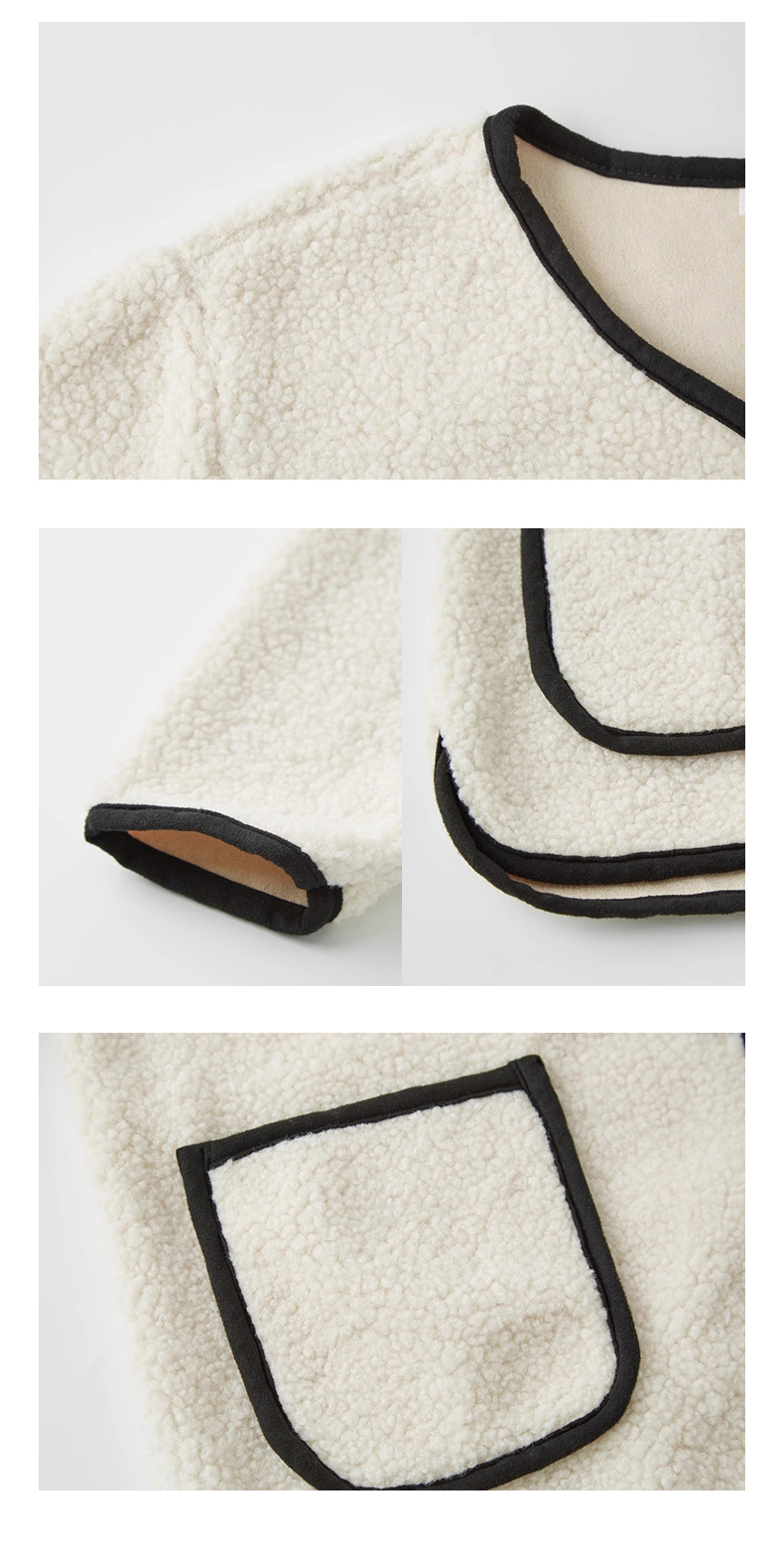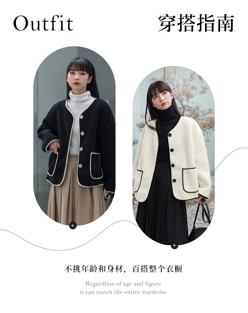 茧墨 撞色小香风仿羊羔绒外套